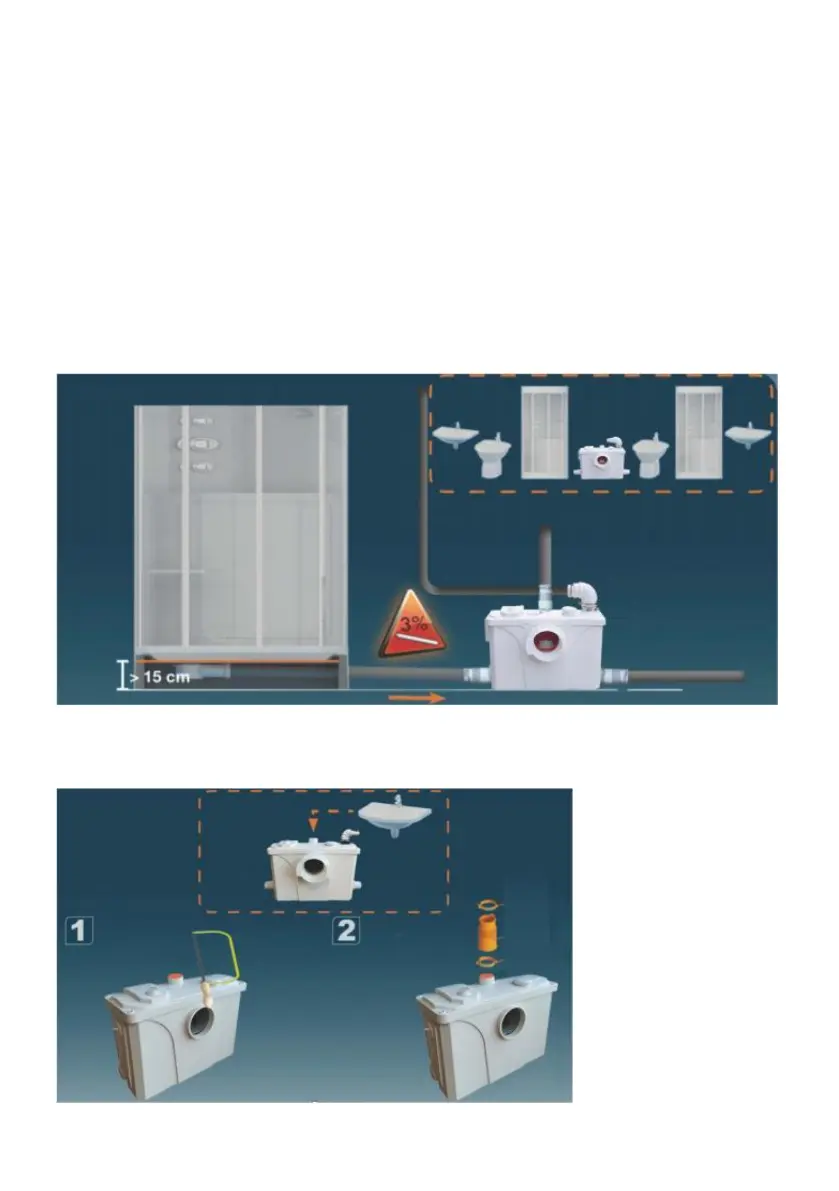 gravity to the unit position. If other sanitary units are connected to the