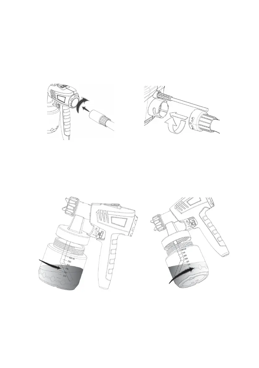 2) Unscrew the container from the spray gun. Aligning suction tube.