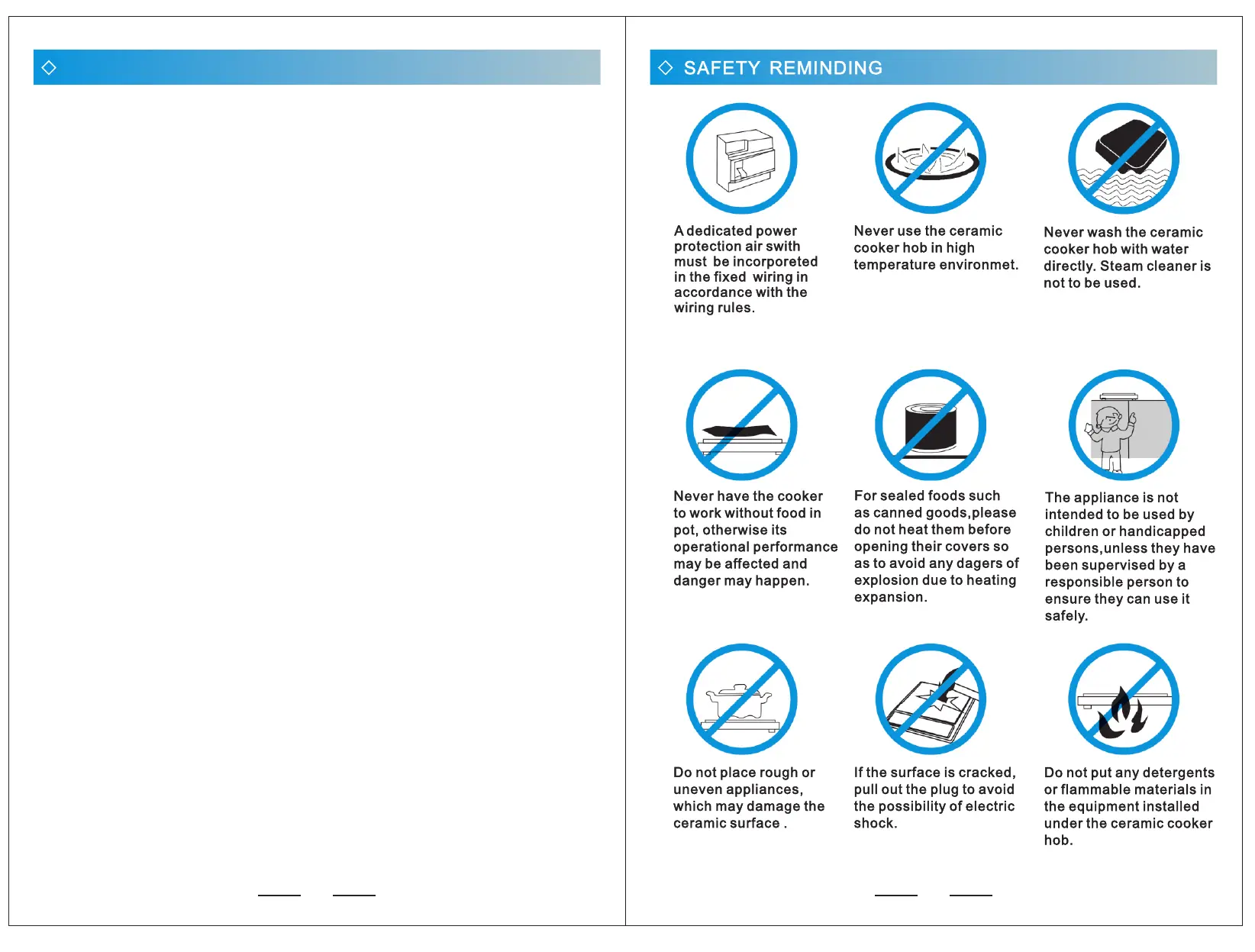 21. Do not place the induction cooker on the iron, stainless steel, aluminum and other
