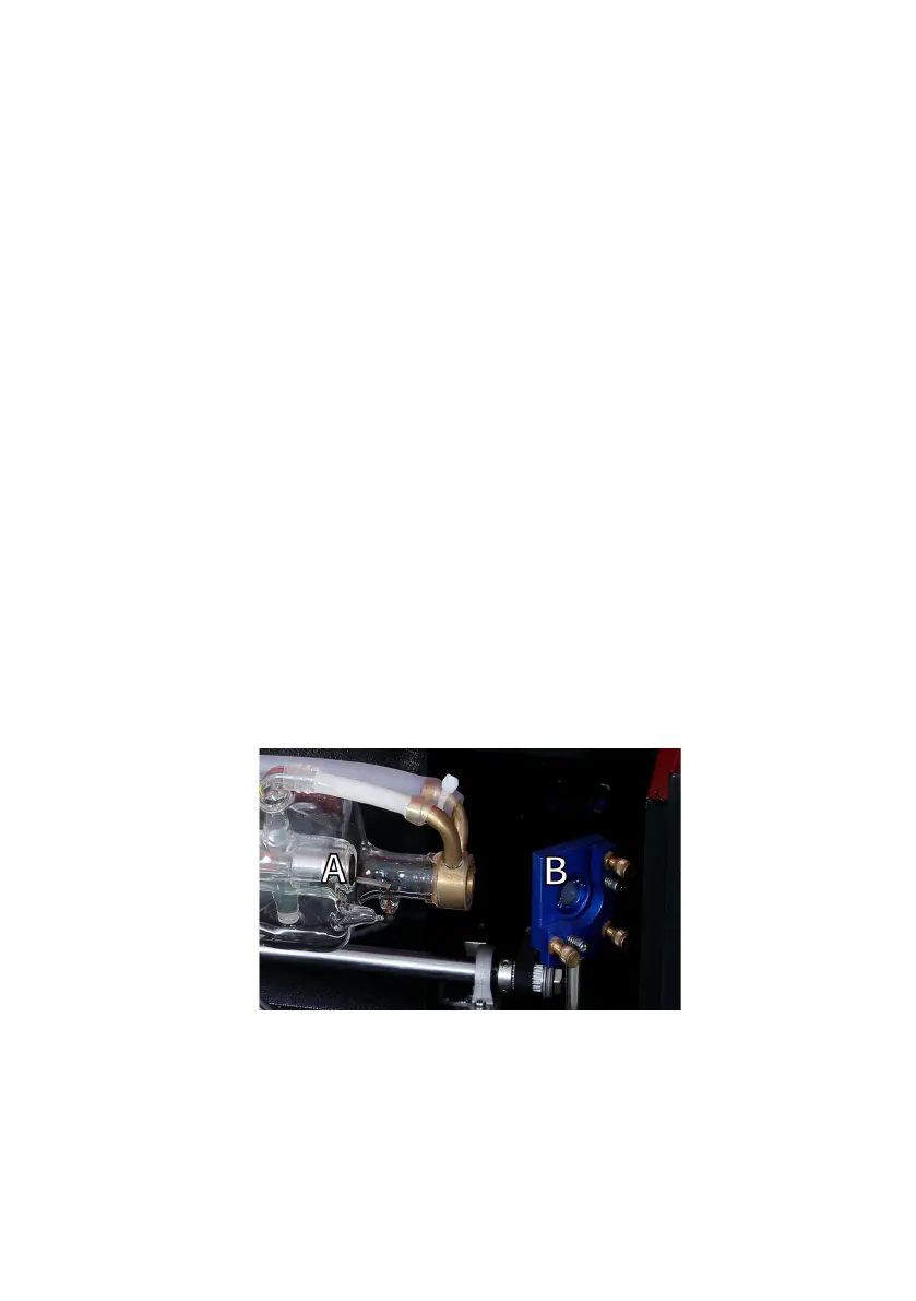 A. Laser tube:This glass tube filled with carbon dioxide is mounted on a