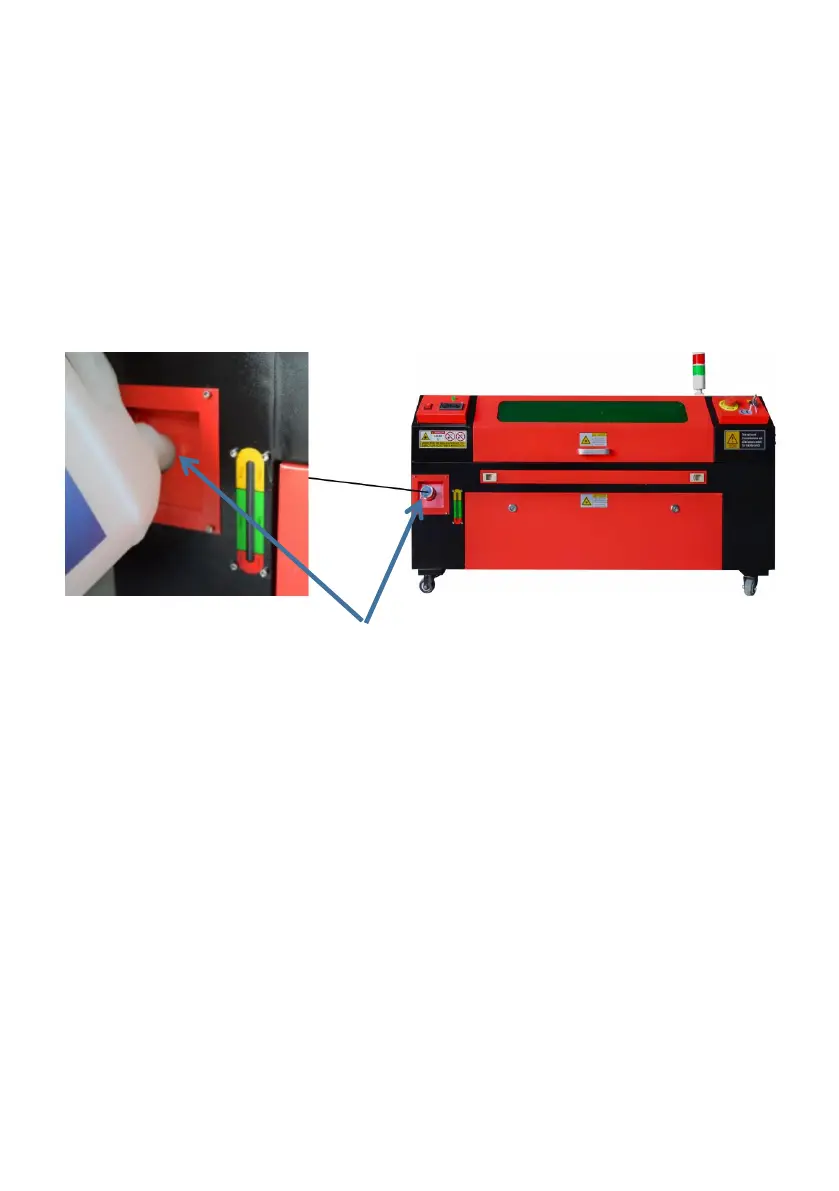 main power supply and water circulation switch of the machine.