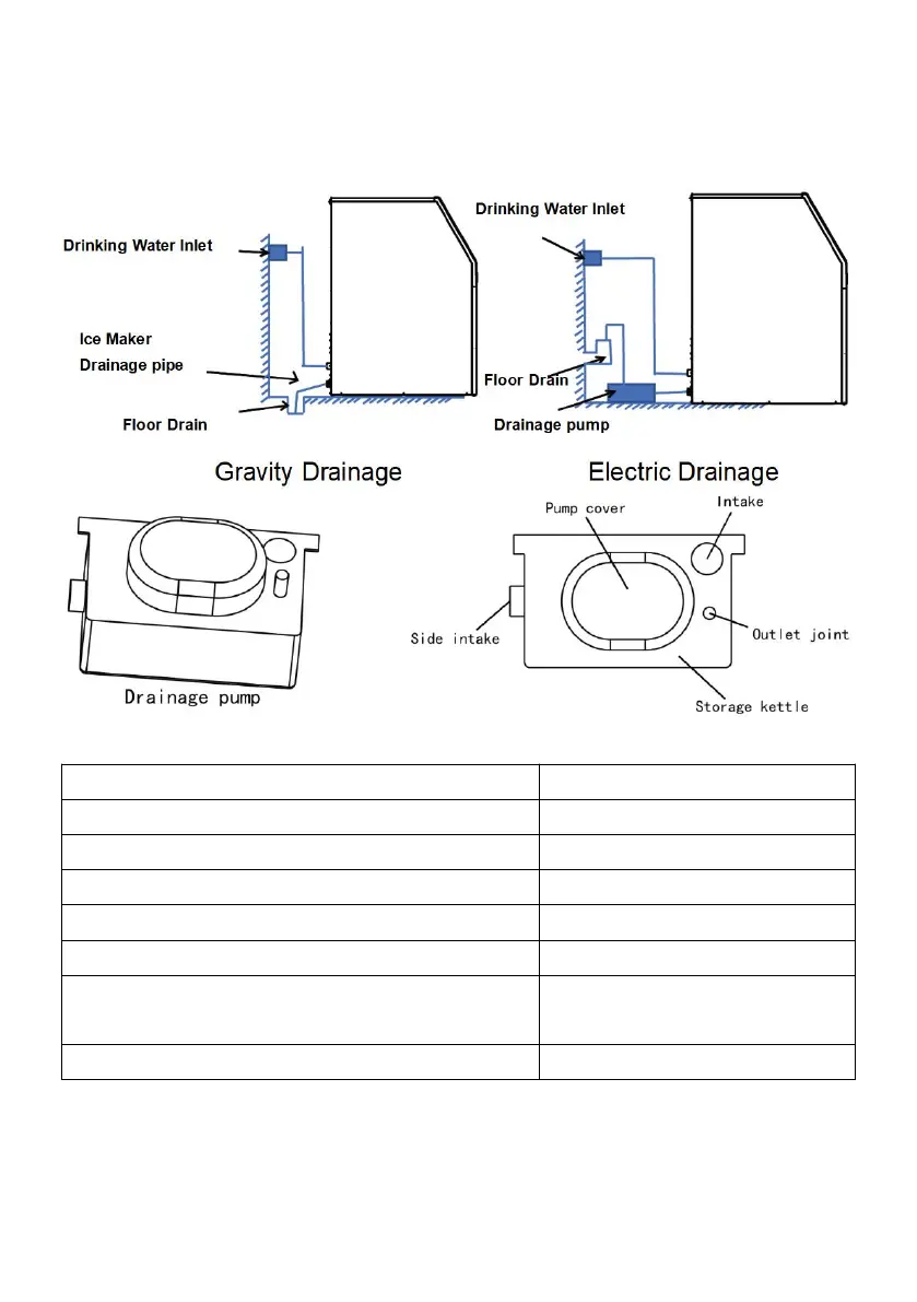 2. Electric Drainage: Connect the drainage pipes of the main unit and ice