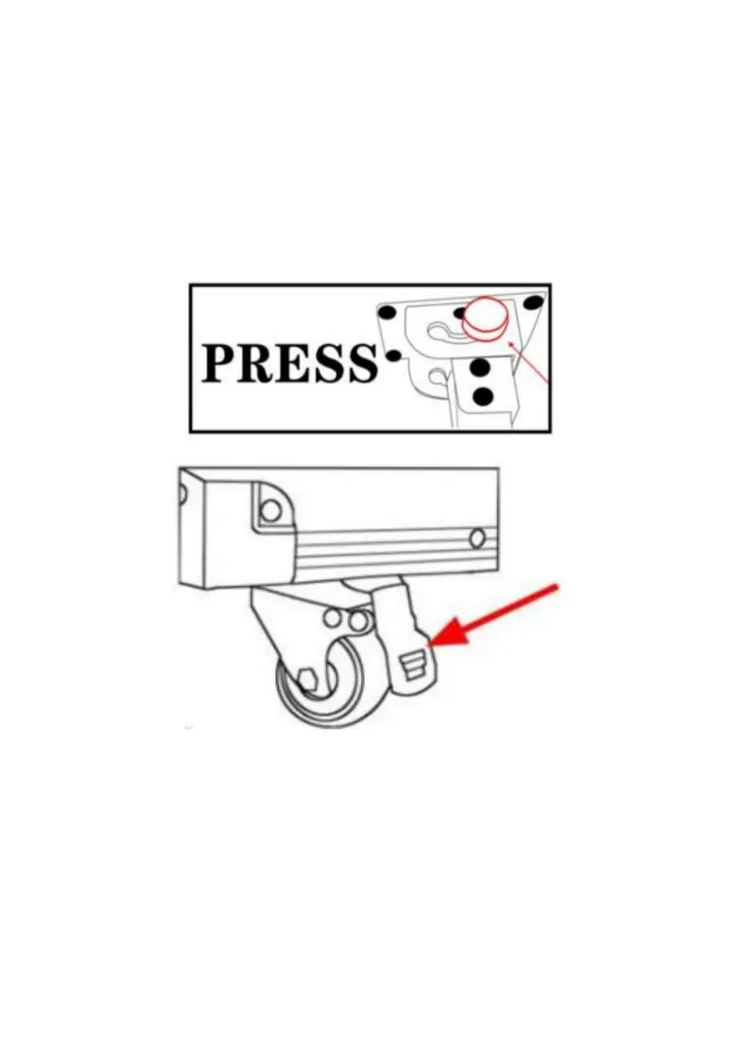 5. Bevestig de vier universele wielen (trap op de voetrem op het wiel)