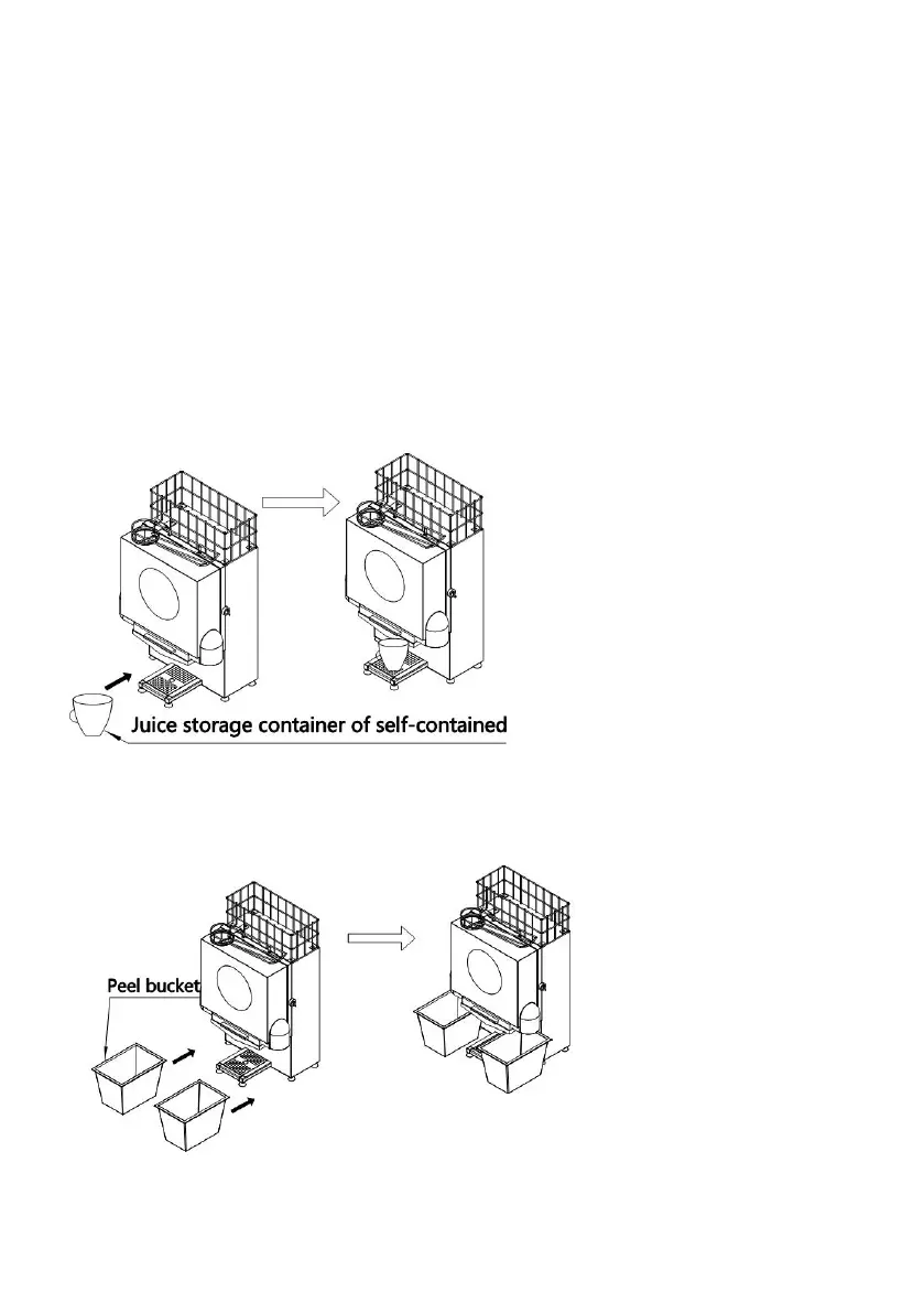 2. Put the fruit peel bucket in the two sides of the bottom of the machine