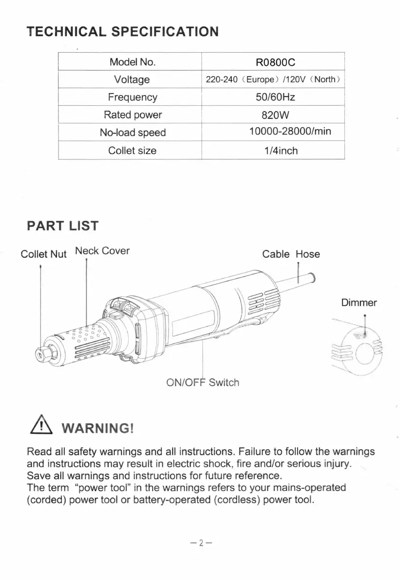 Read all safety warnings and all instructions. Failure to follow the warnings