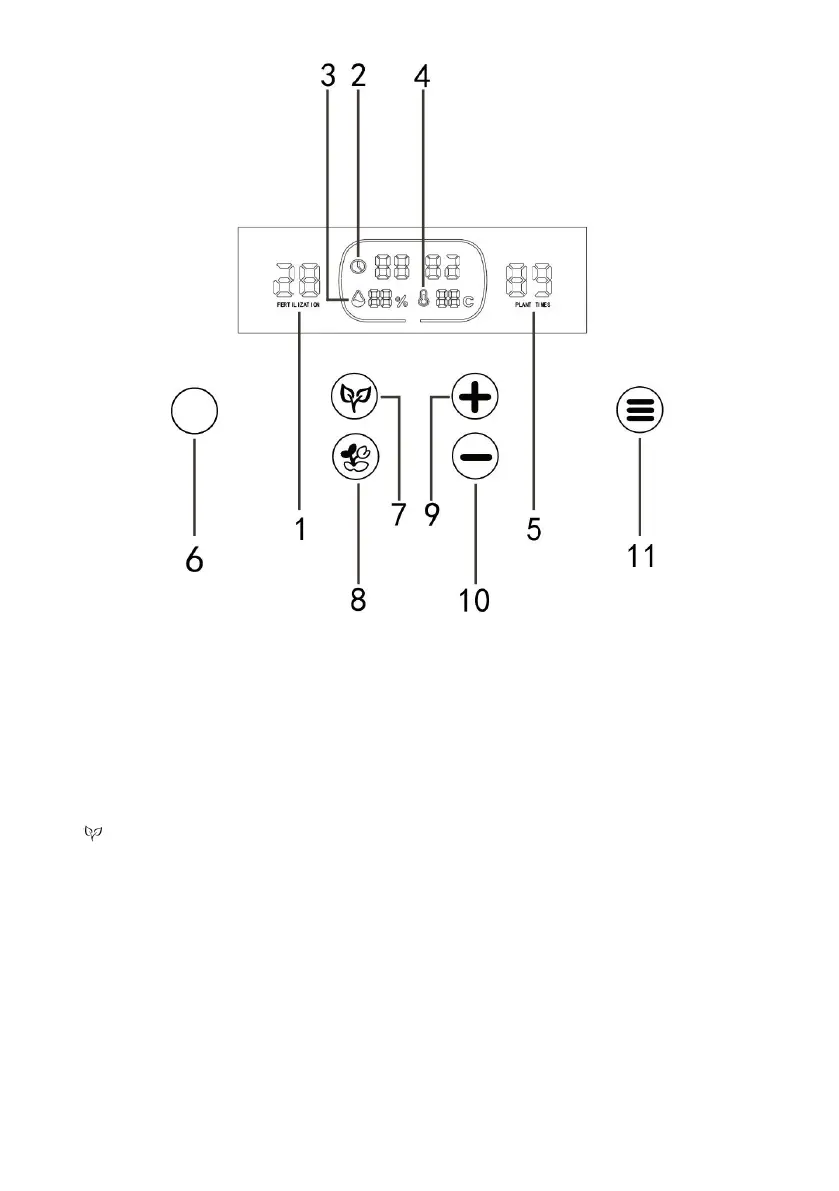 Long press the button for five seconds, you can reset the growing days and fertilization
