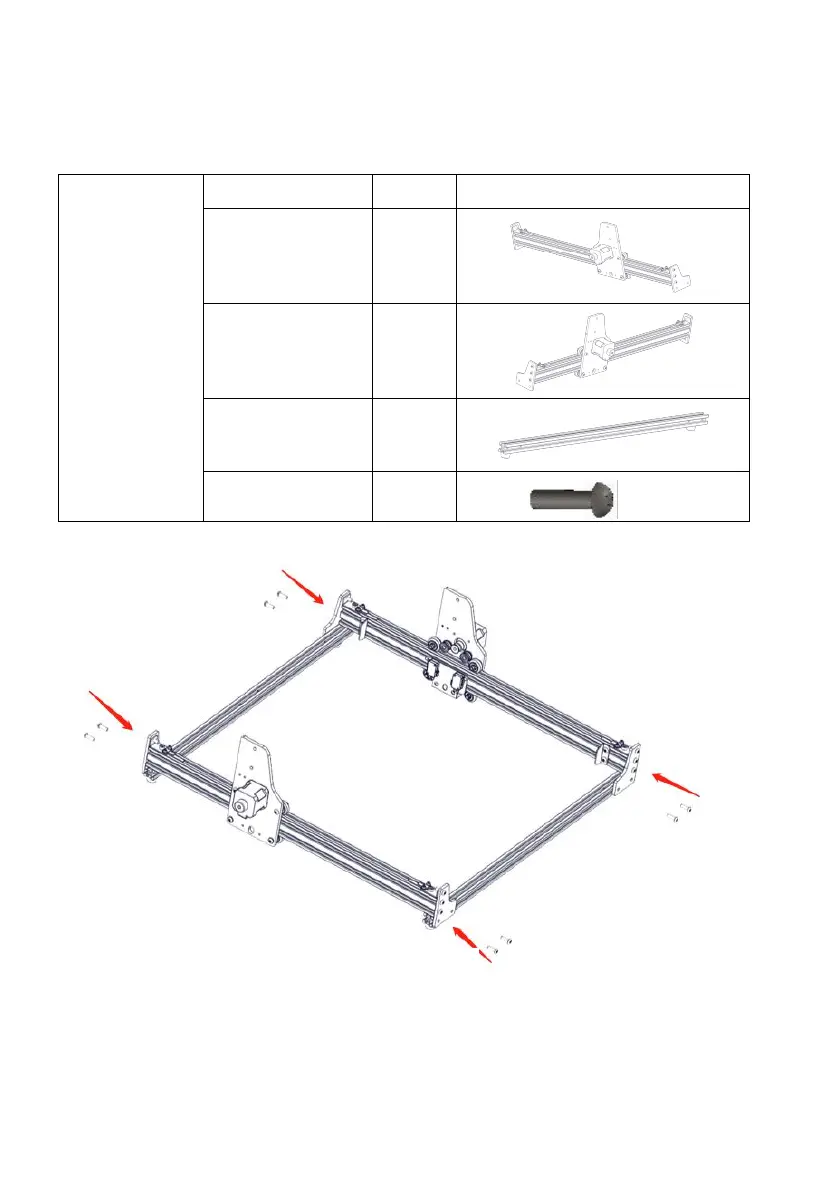 1. The base structure and left and right Y axis are placed as shown in