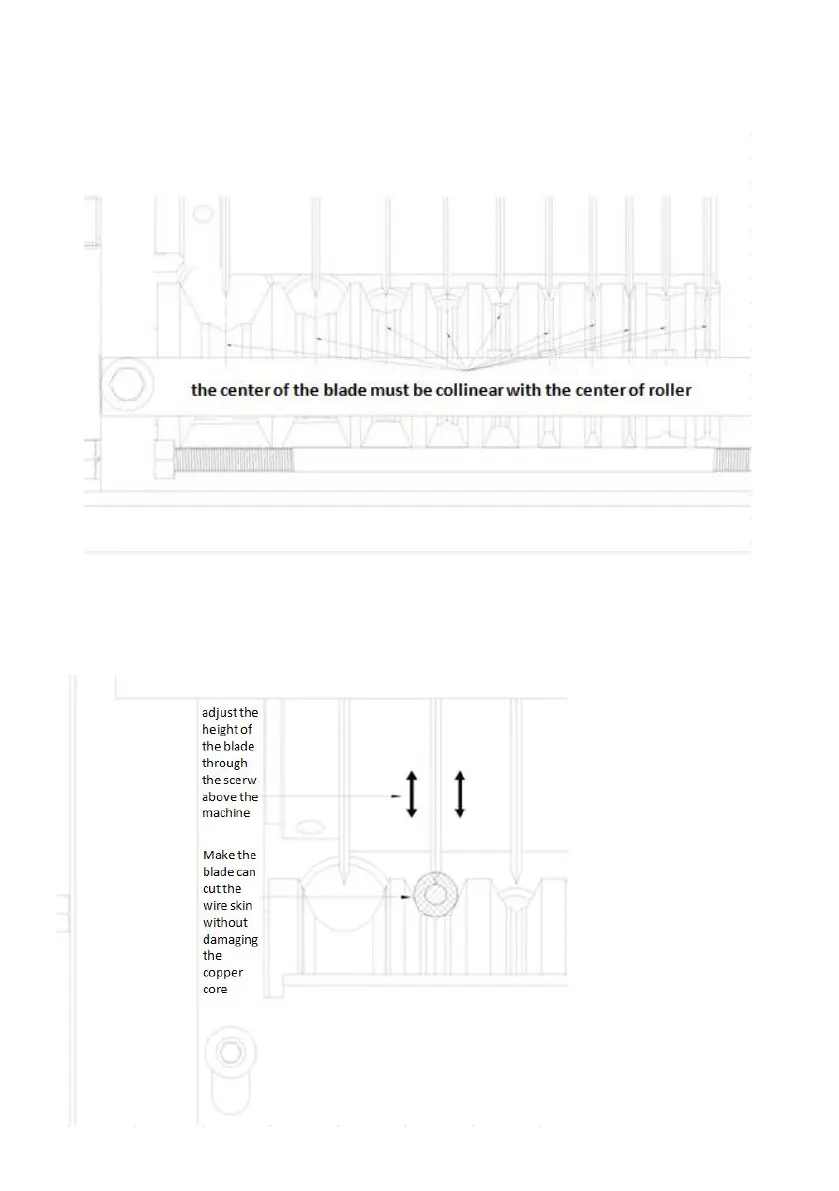 2. During wire stripping, the center of the blade must be collinear with the