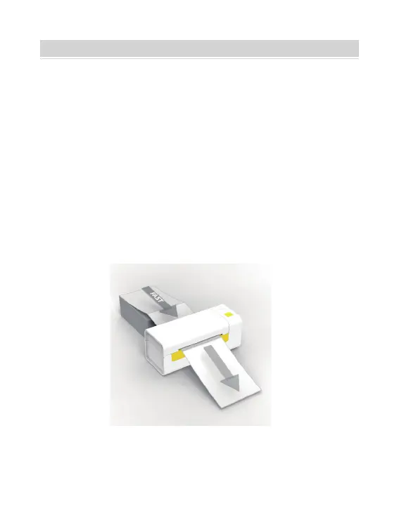 Insert the label from the backside of the printer, the printer will