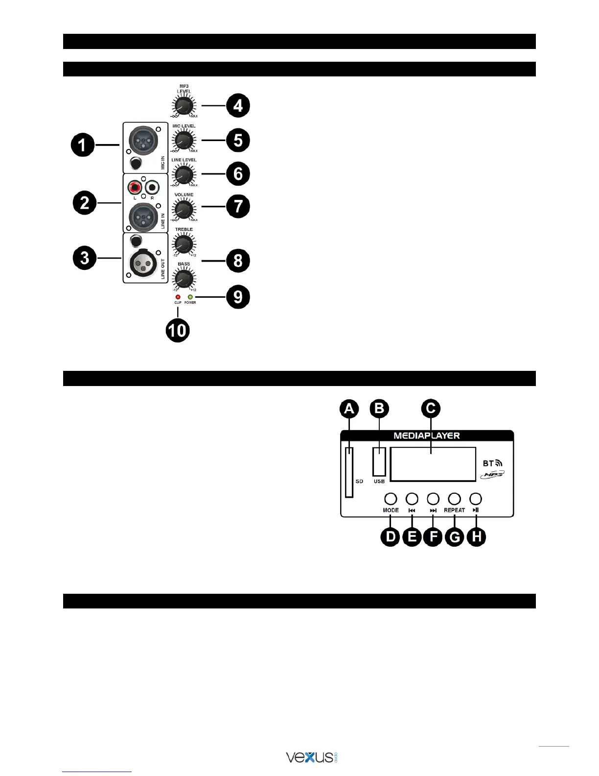 1. Input connector for microphone.