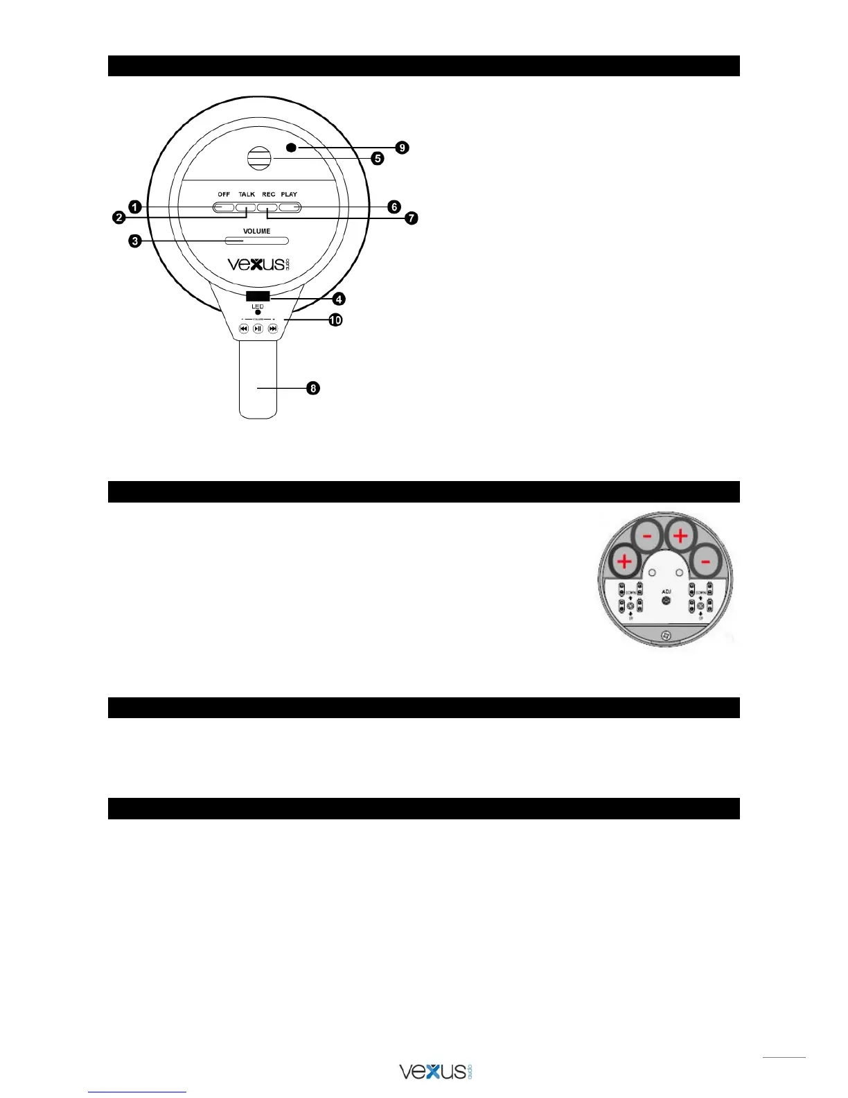 5. If the megaphone is activated and the volume of the speaker is weak, the batteries might be empty.