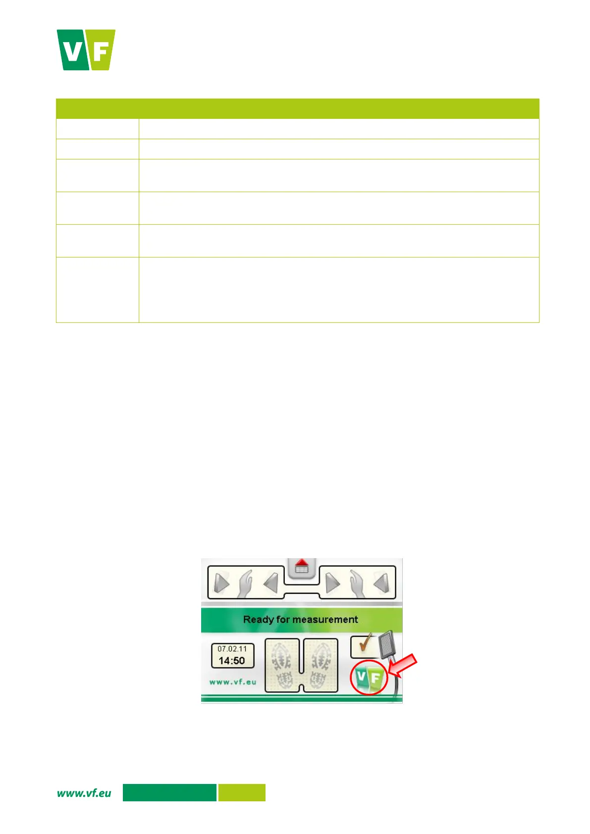 Open the service menu by pressing the VF logo (Fig. 30). The menu items are shown in Fig. 32. If the