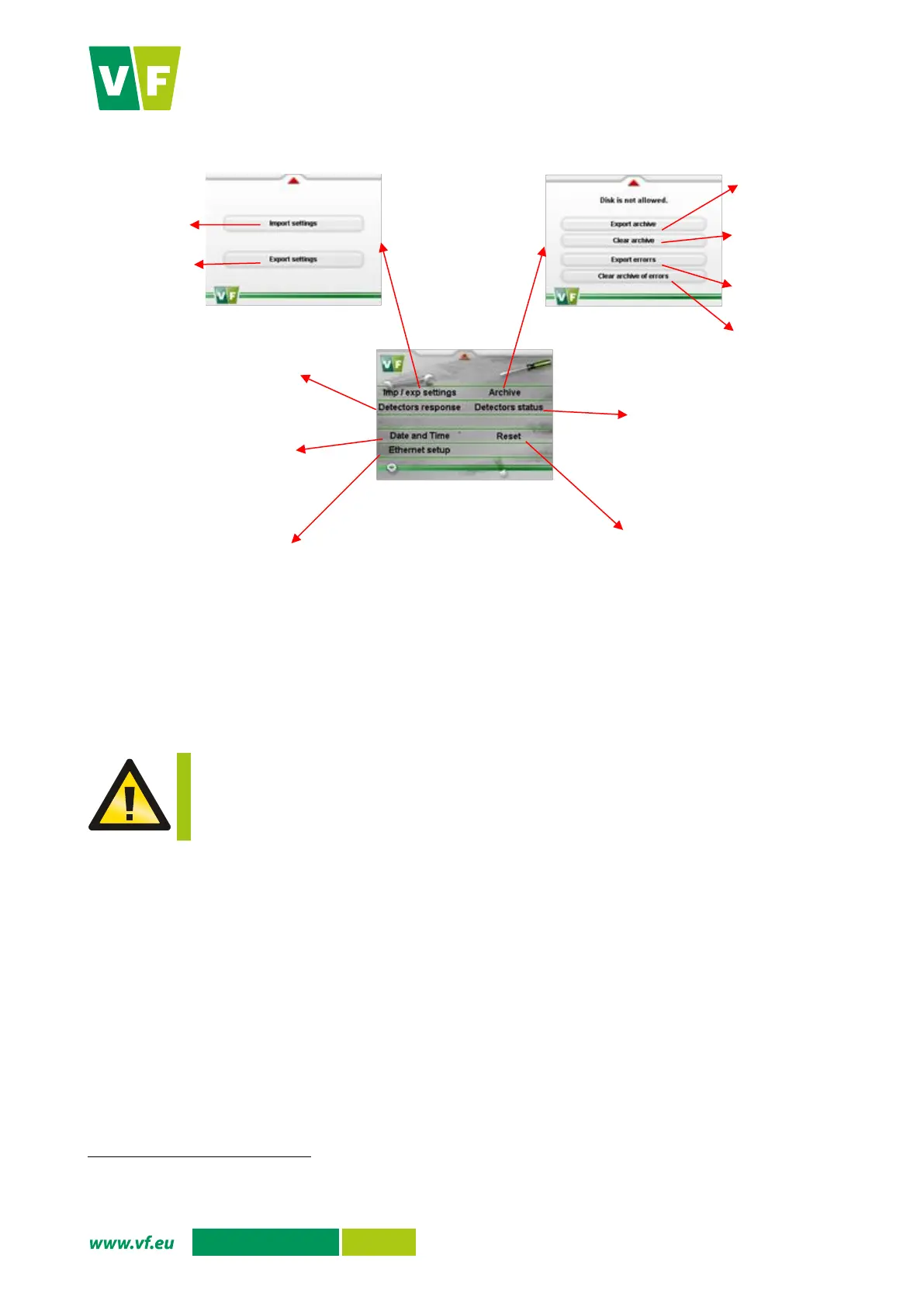 In the service menu press the “Archive export” option. The display shows the screen to export the