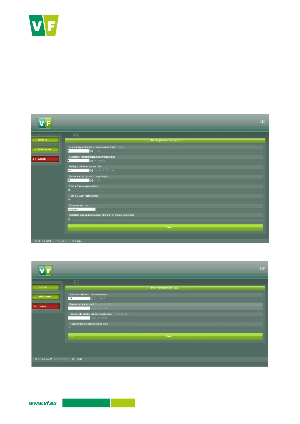 Fig. 46 Web interface – Device parameters (page 1)