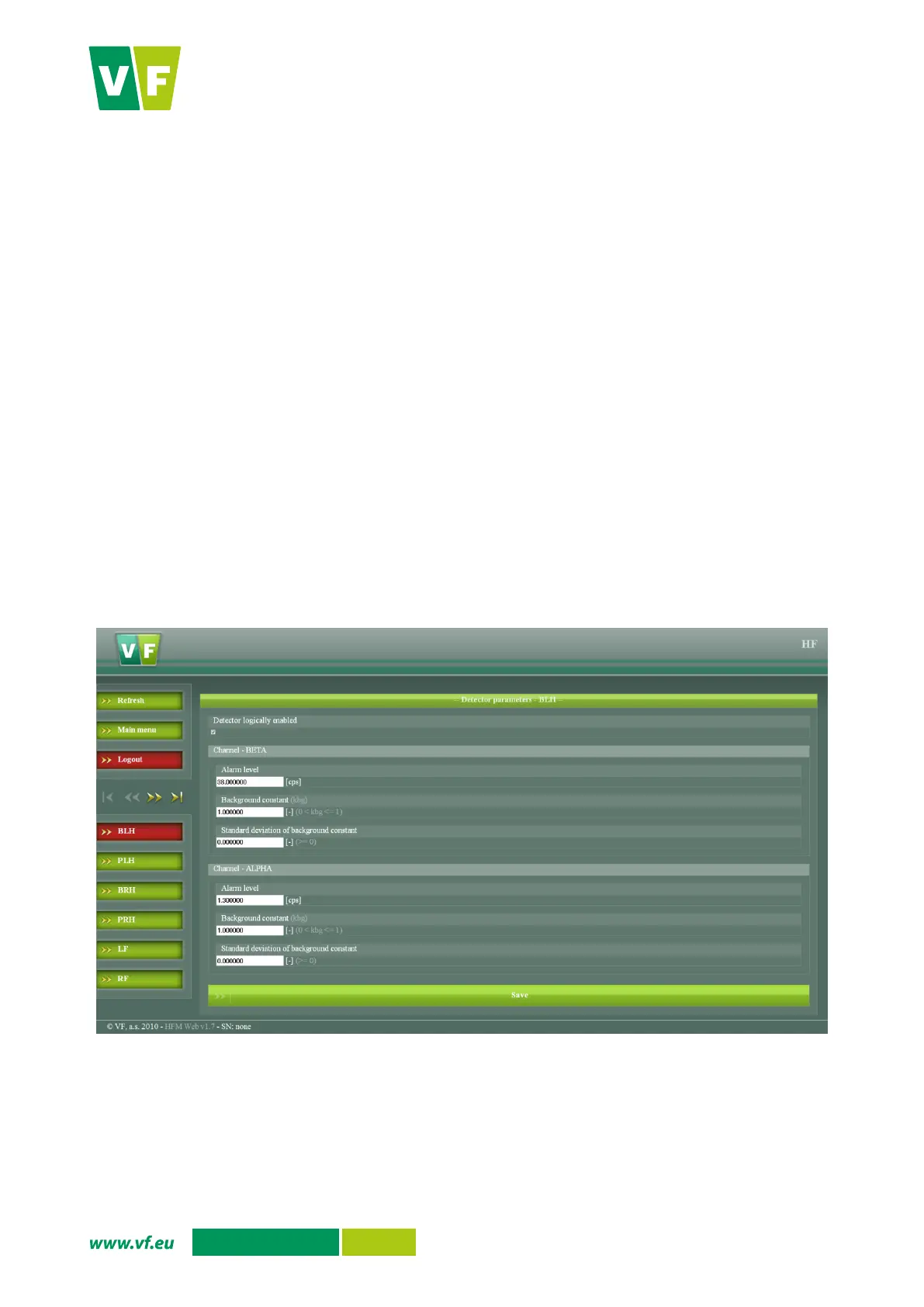 Fig. 48 Web interface – Detectors settings