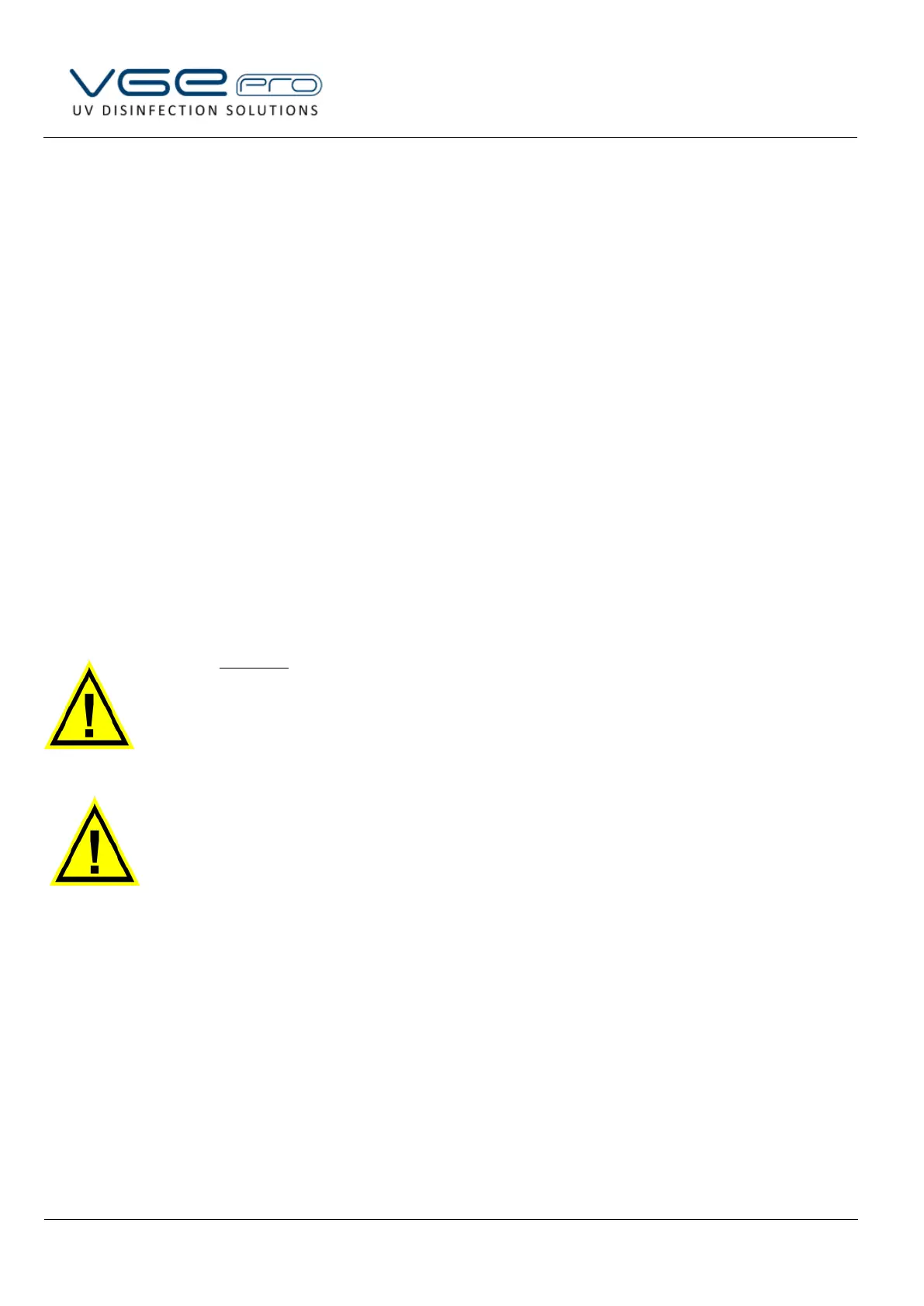 water. The user of the UV installation must therefore take measures to ensure, in