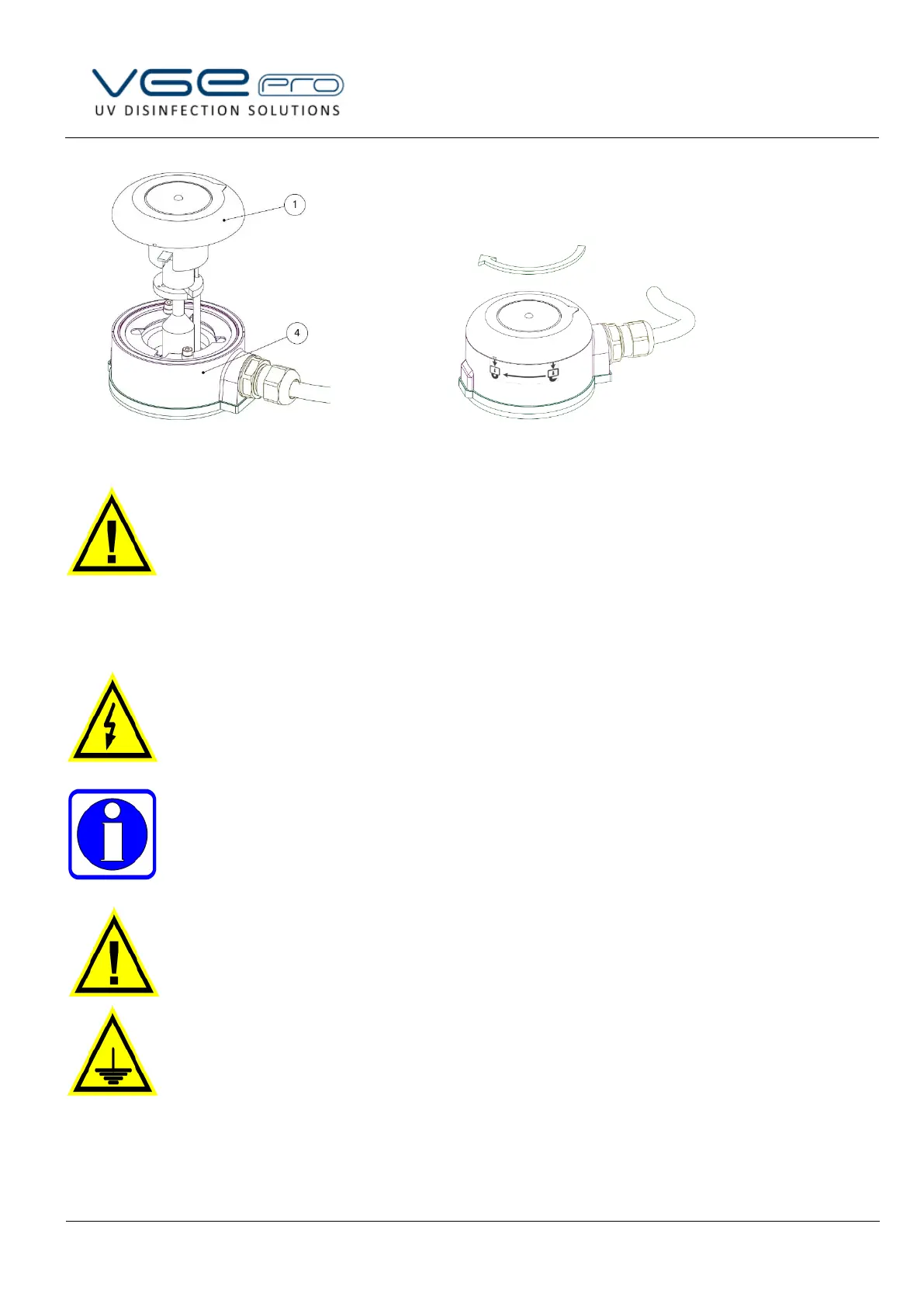 The UV system is supplied with a permanently connected power cord with plug, this must be connected to a