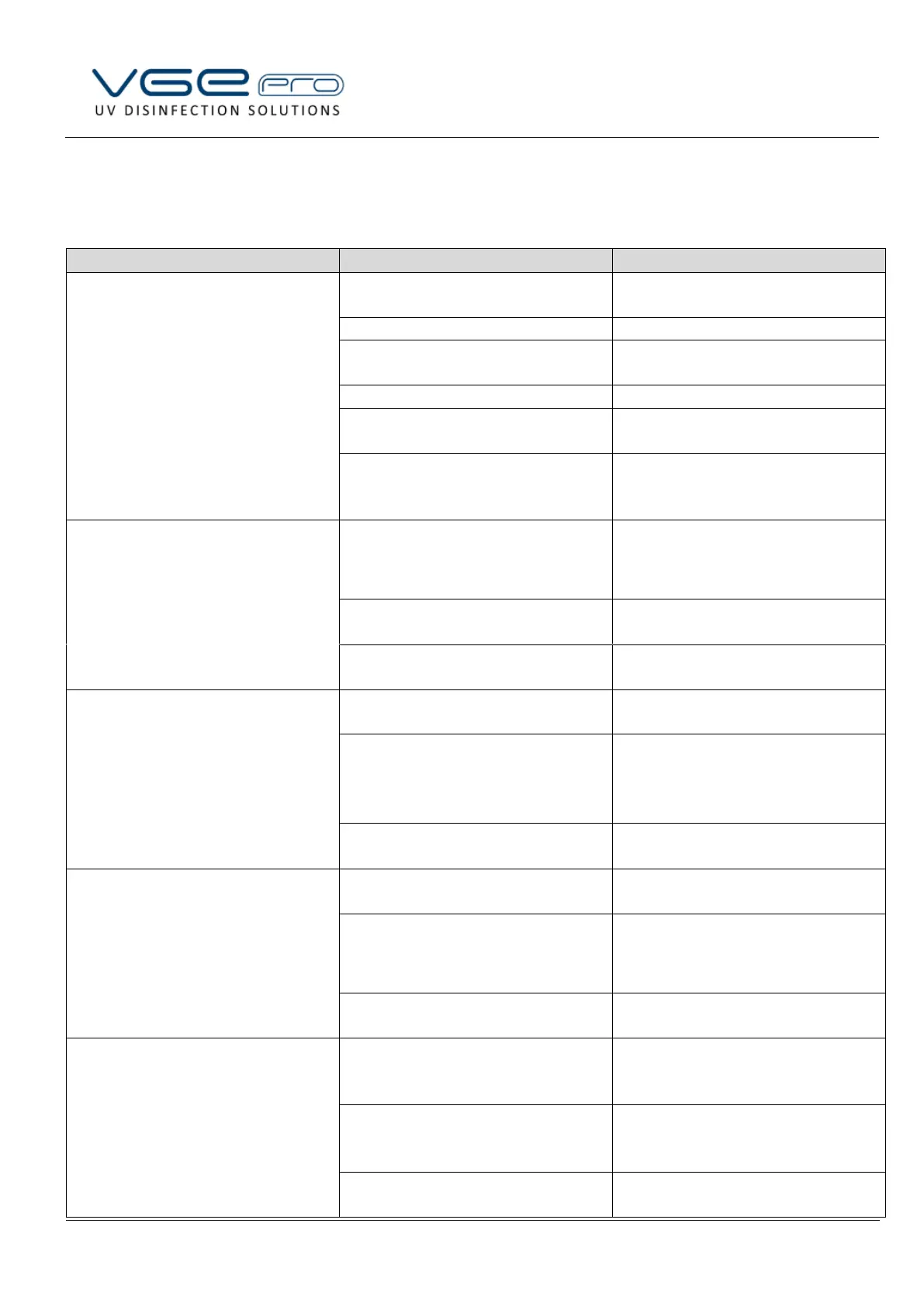 If malfunctions occur during the water treatment process with the UV system, the overview below can be