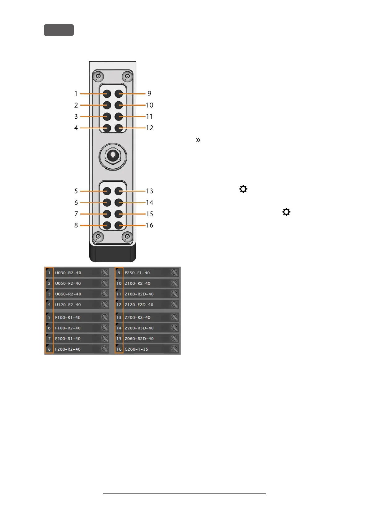 FIG. 45 SUPERIOR: POSICIONES DE HERRAMIENTA 1 – 16 EN EL ALMACÉN