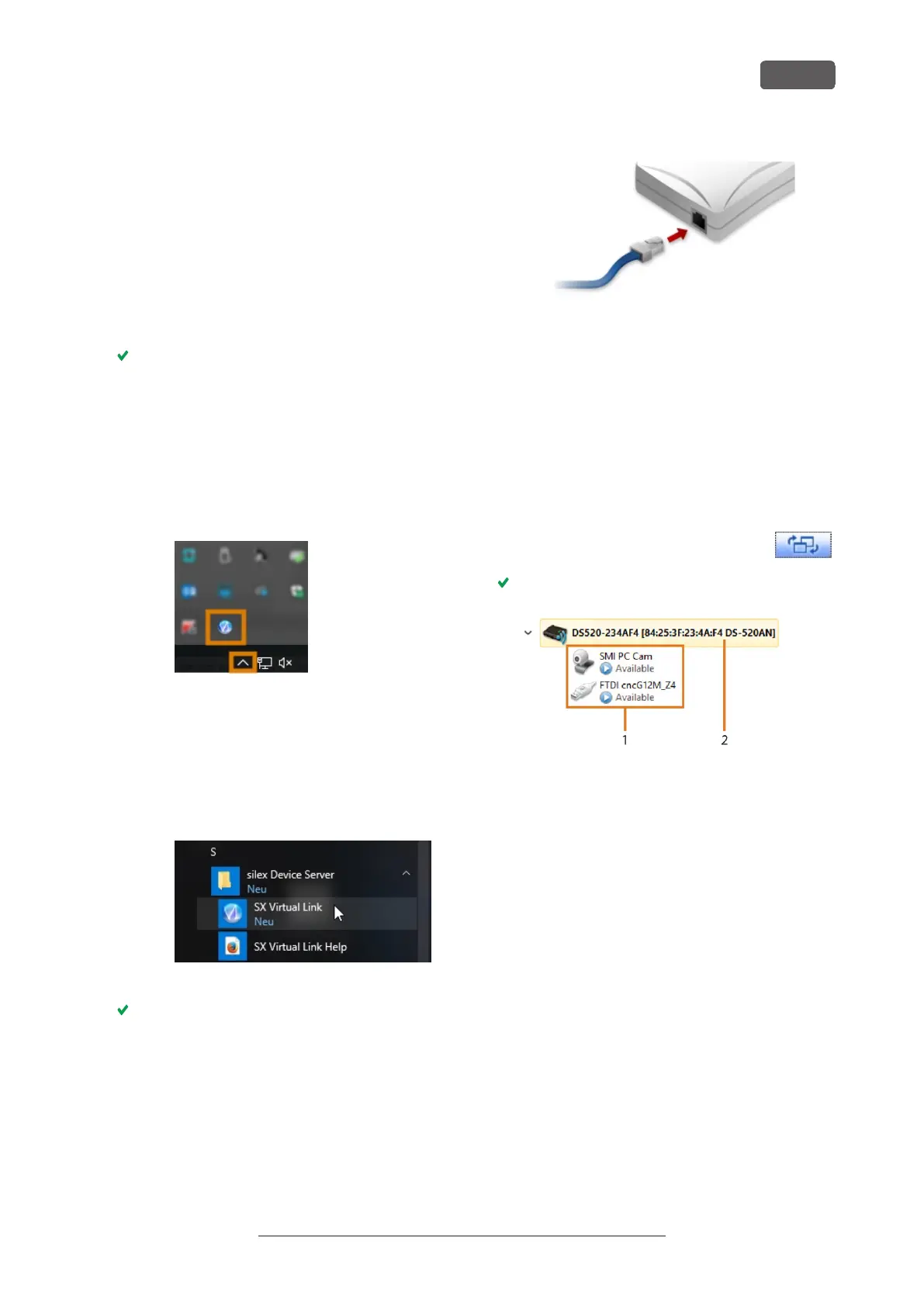14. In the SX Virtual Link window, locate the device