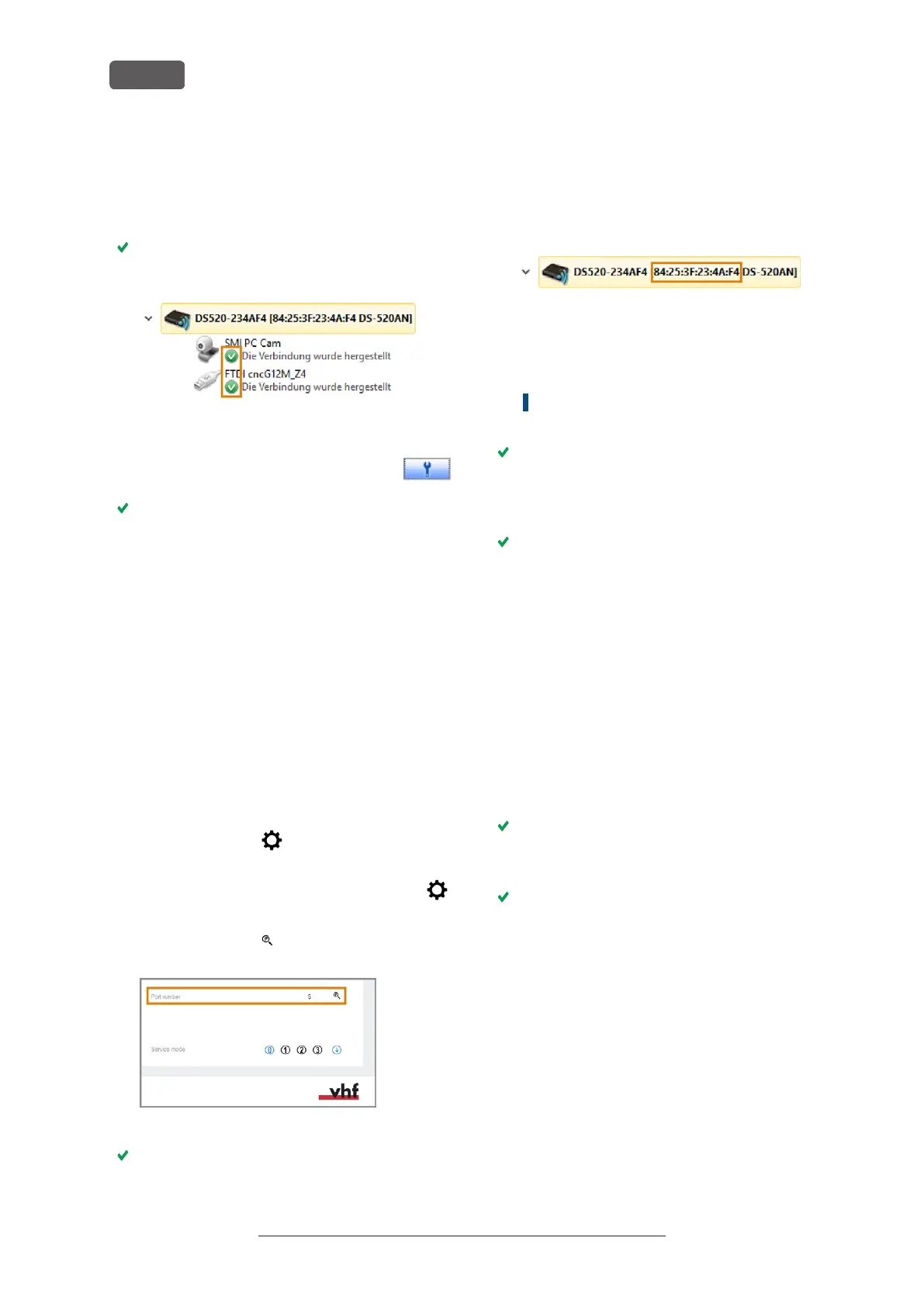ABB. 25 GRÜNE HÄKCHEN ZEIGEN ERFOLGREICHE VERBINDUNGEN AN