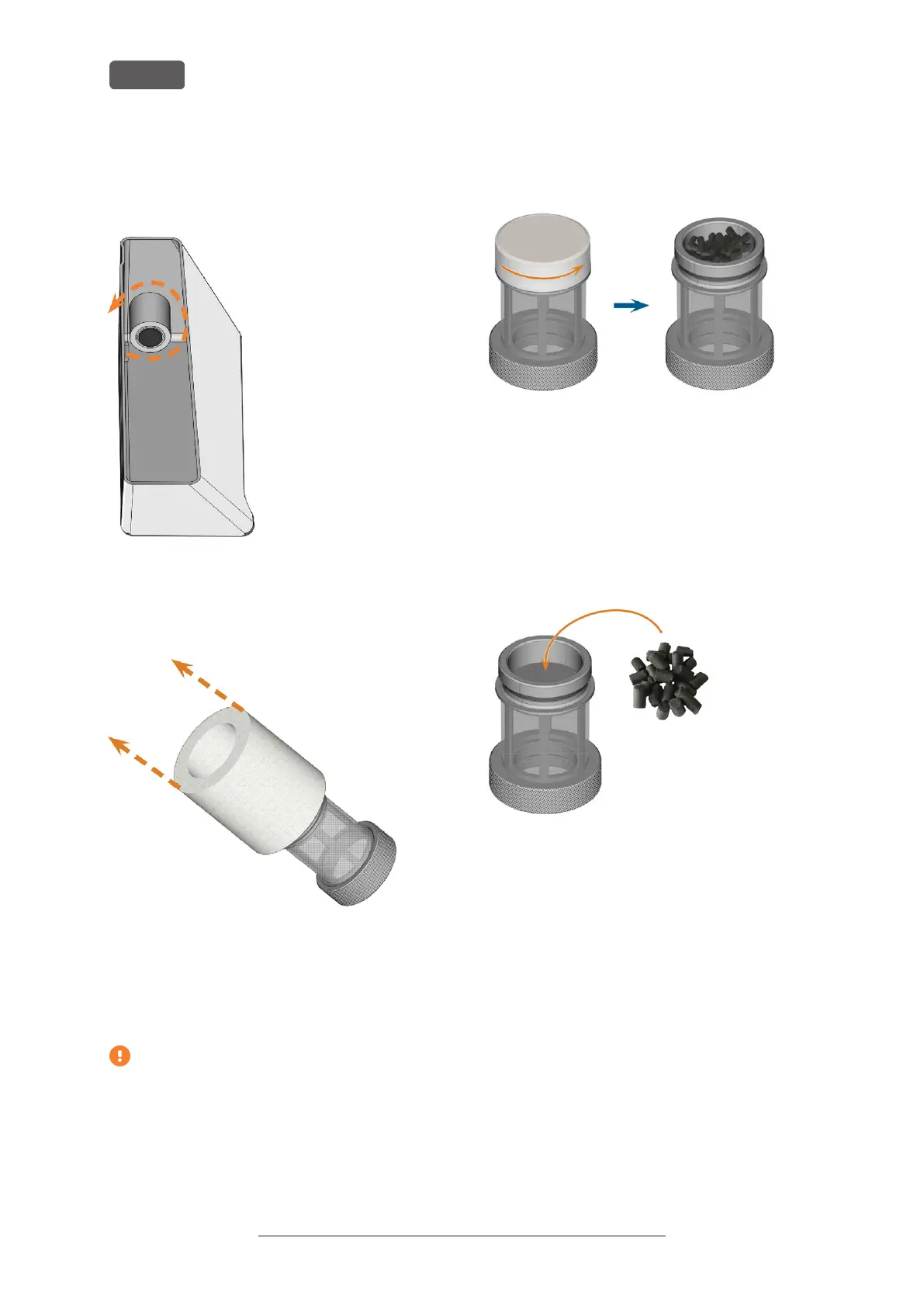 9. Vierta nuevos pellets de carbón activado en el filtro