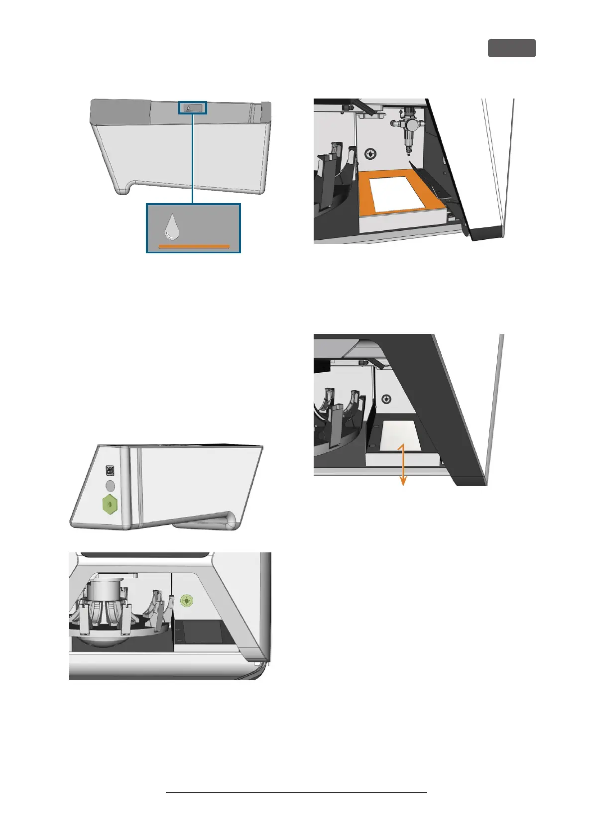 12. Pulire a fondo la superficie rigida sotto il serbatoio