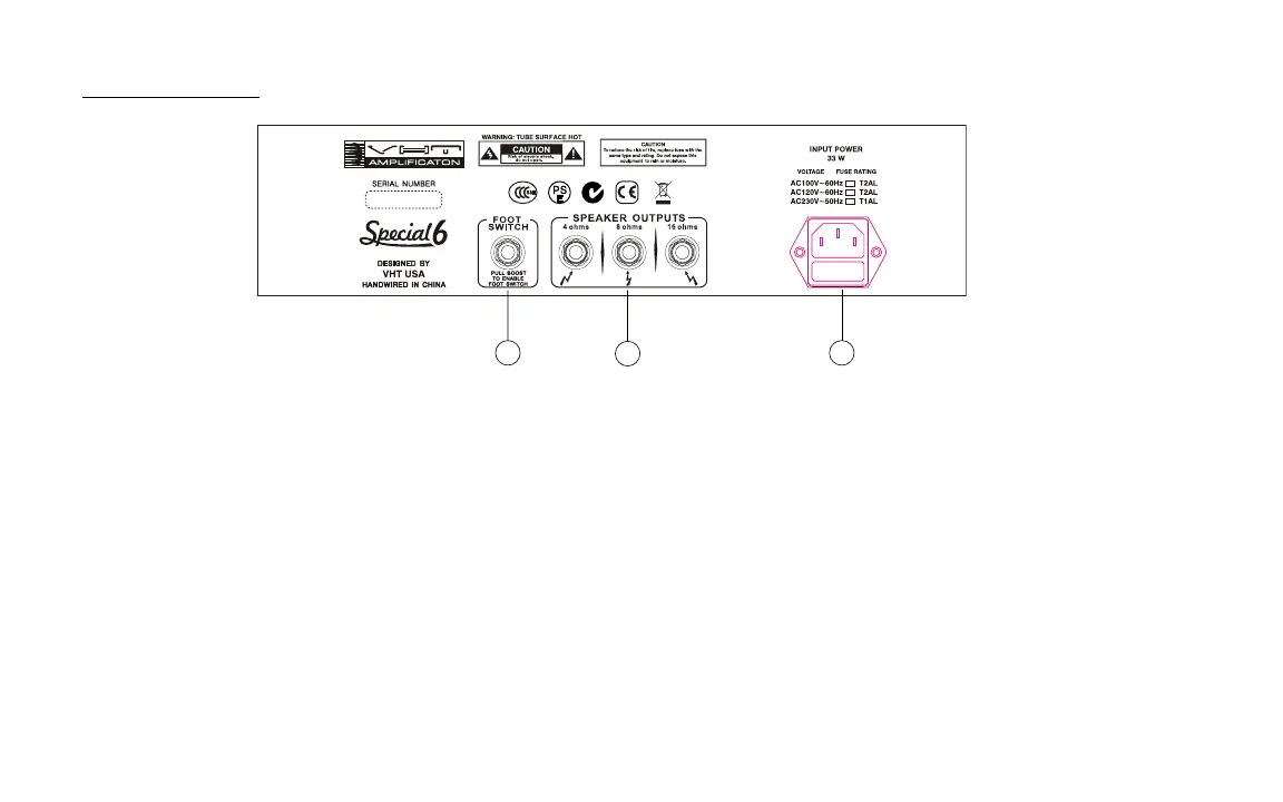 VHT SPECIAL 6 - Rear Panel Connections