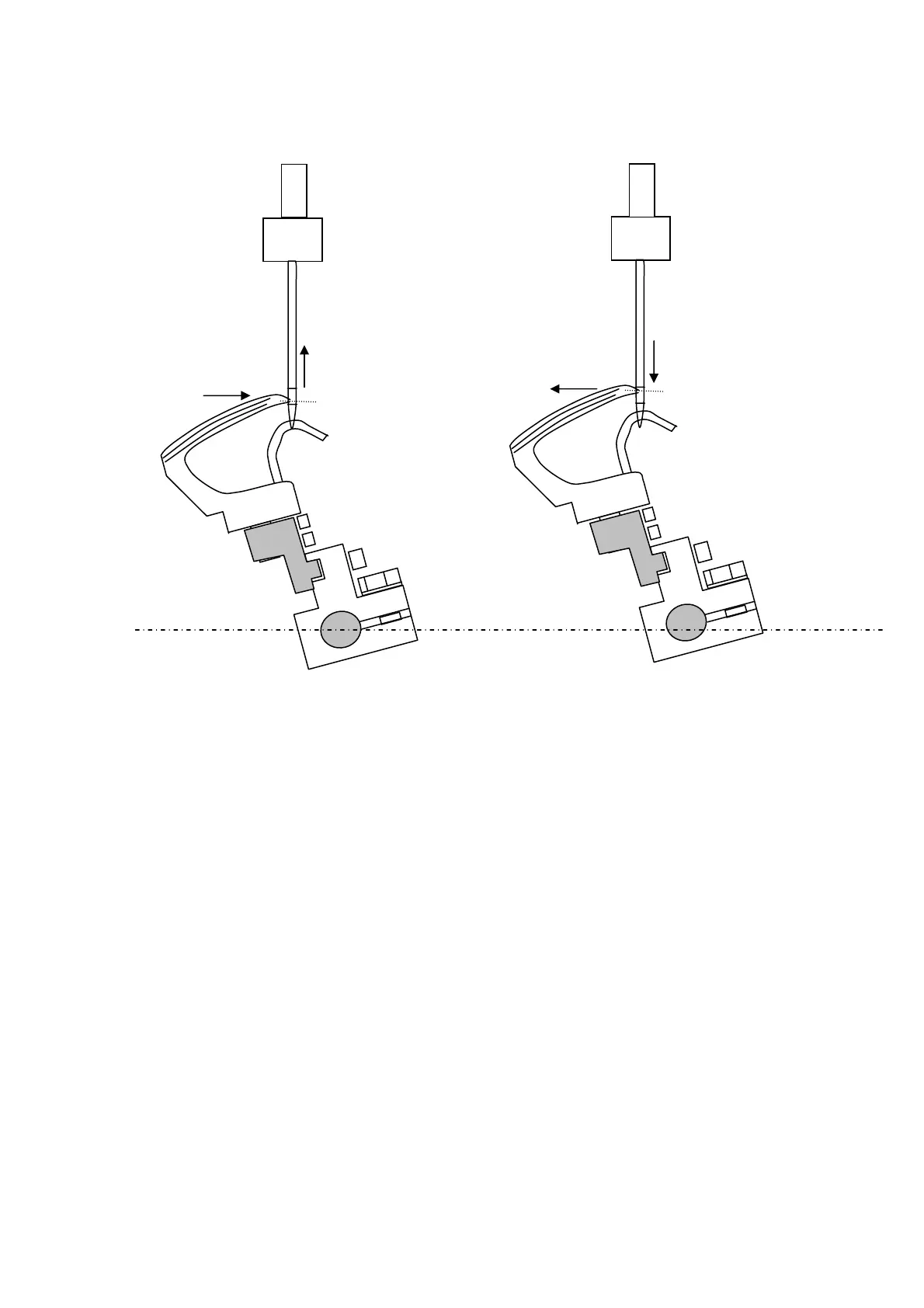 during backward movement the crochet hook is higher than the centre line of the eye itself