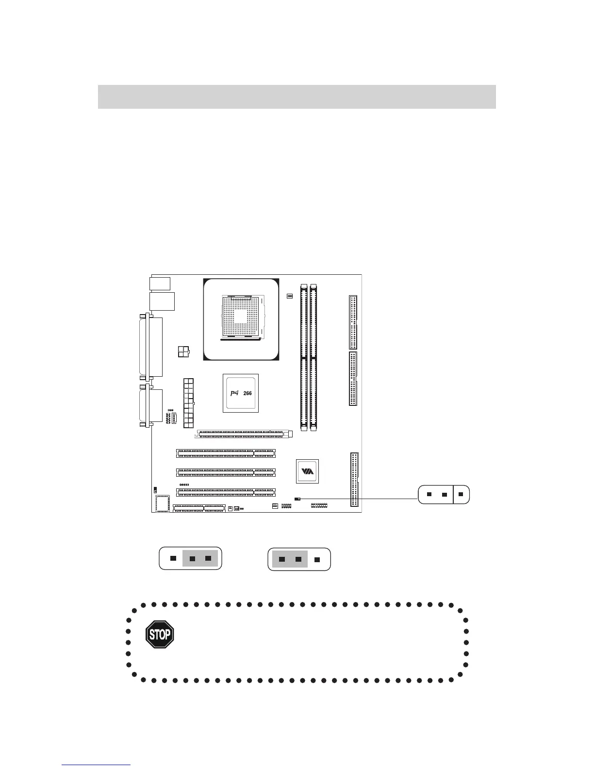 The VIA P4MA PRO mainboard provides jumpers for setting the mainboard’s
