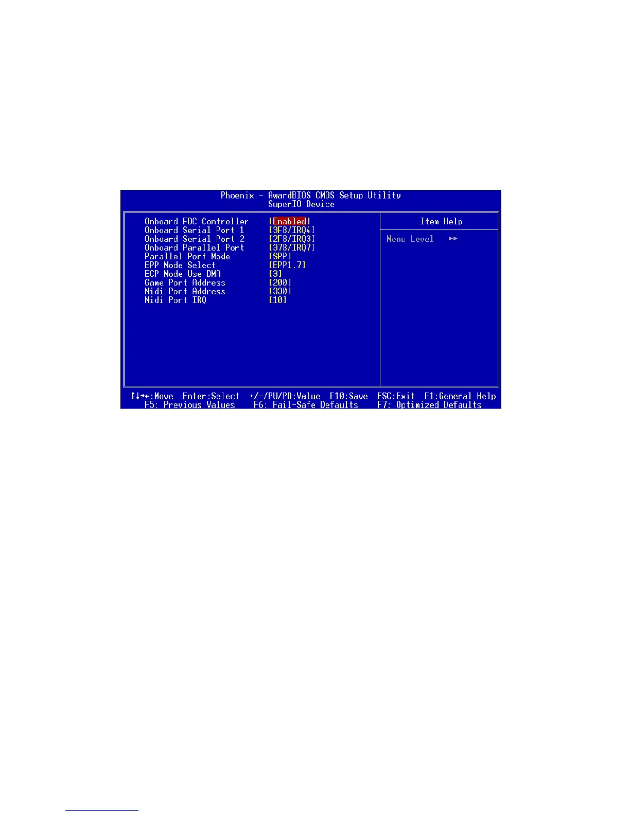 Enable the onboard floppy controller. Select “Enabled” when you have