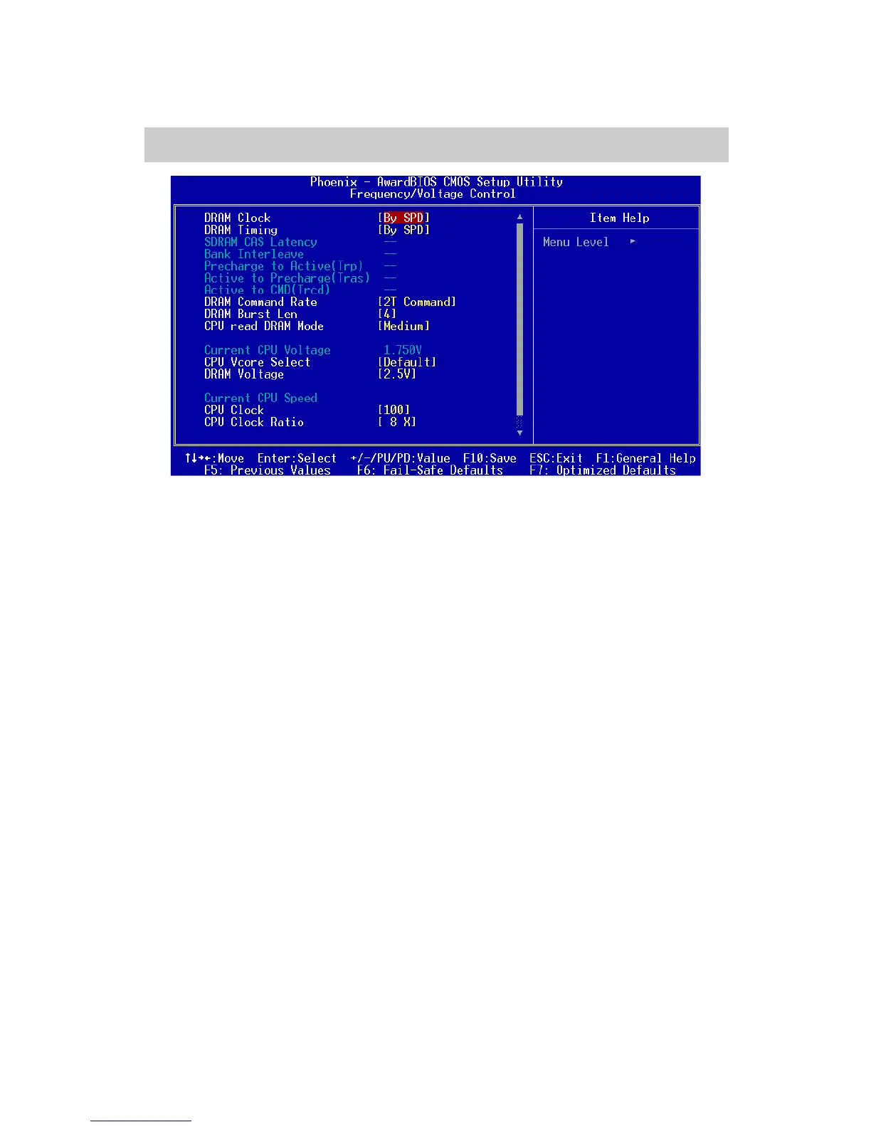 and DRAM clock frequency. Settings: By SPD, 100MHz and 133MHz.