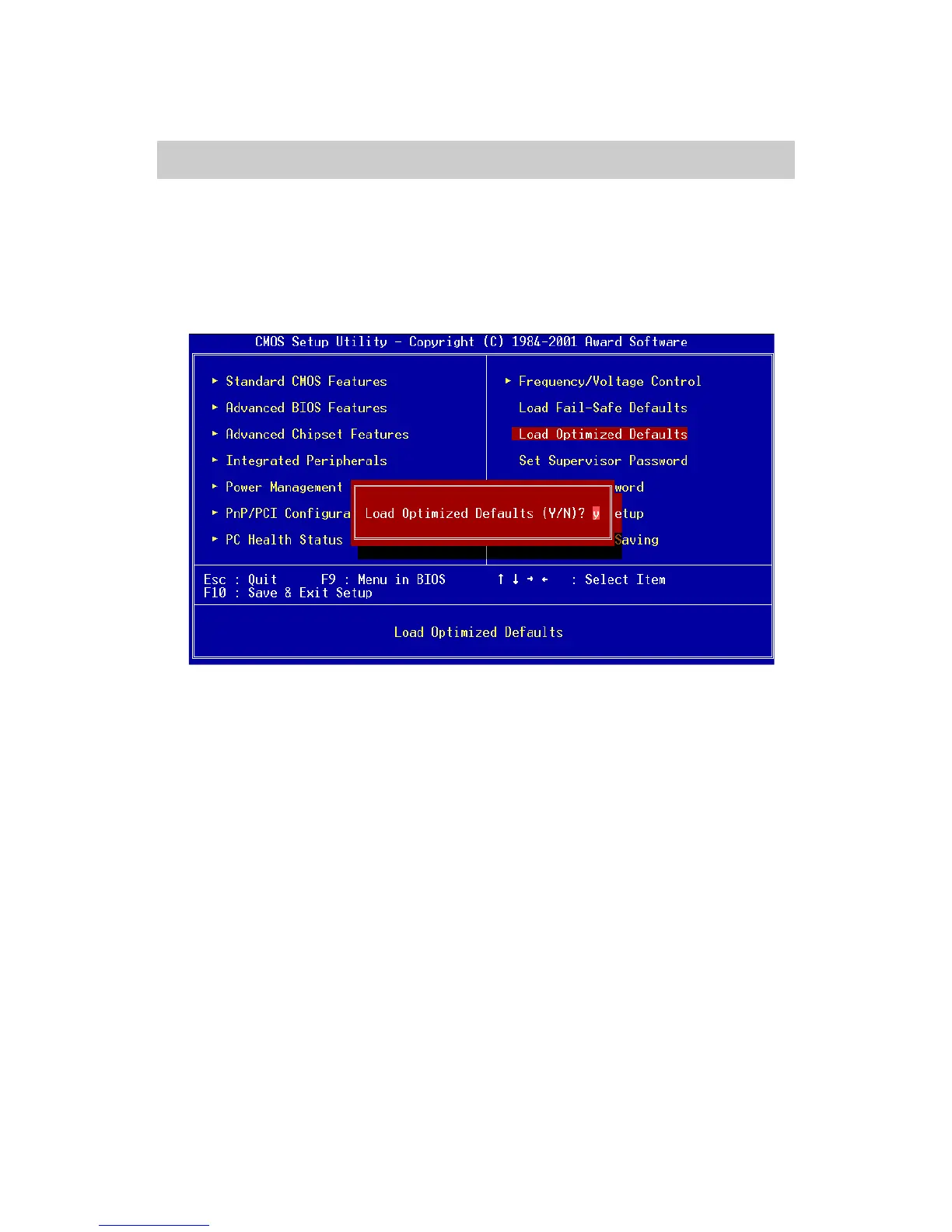 When you select Load Optimized Defaults, a message as below appears:
