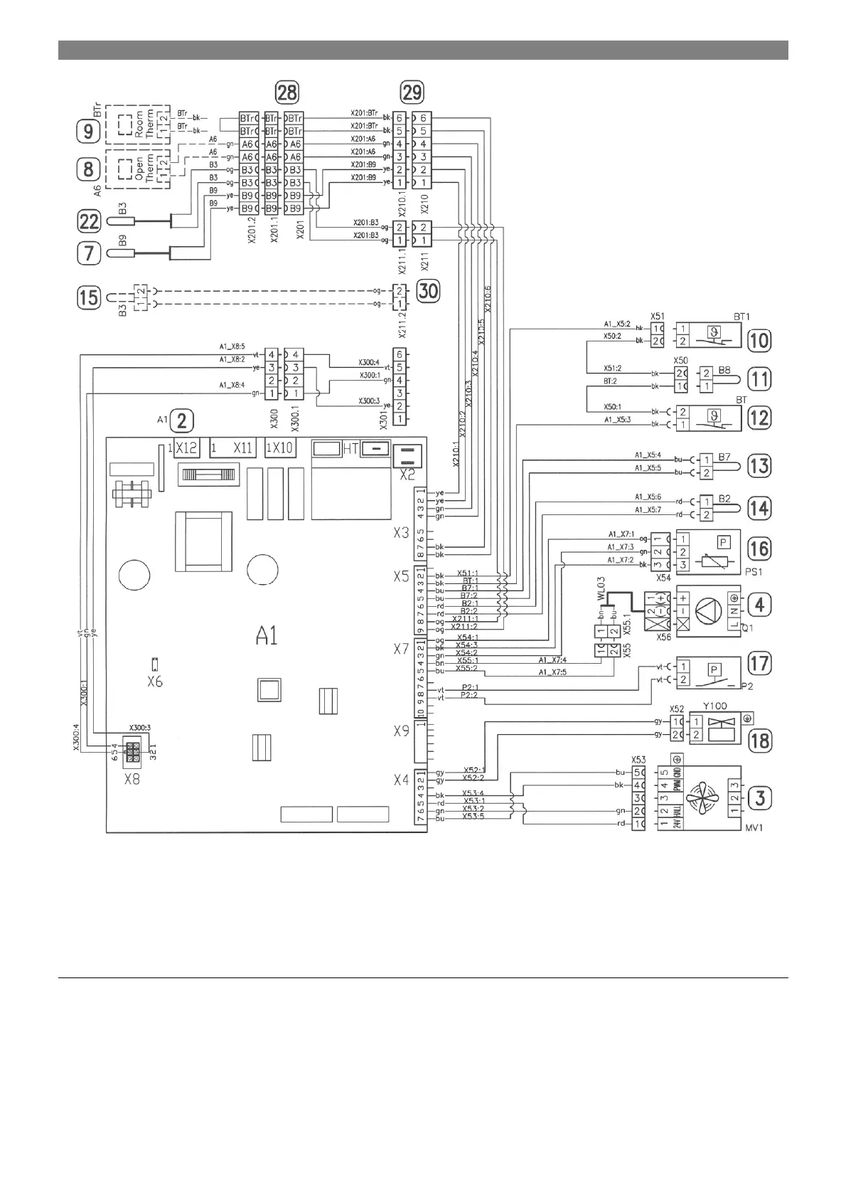 Fig. . 21 Boiler electrical equipment wiring diagram (extra-low voltage)