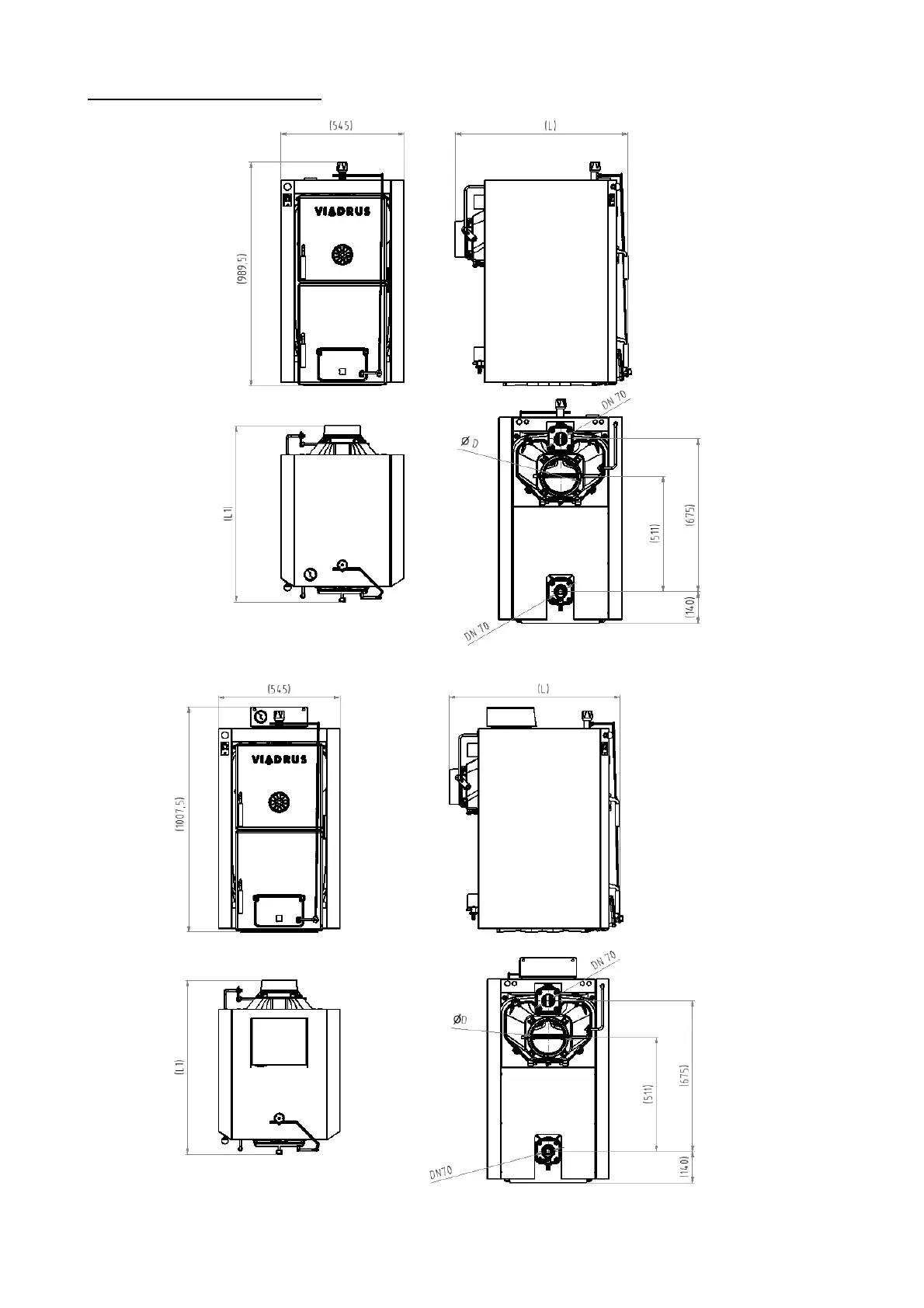 Fig.no. 8 Connecting dimensions of VIADRUS HERCULES U 22 boiler without the control box