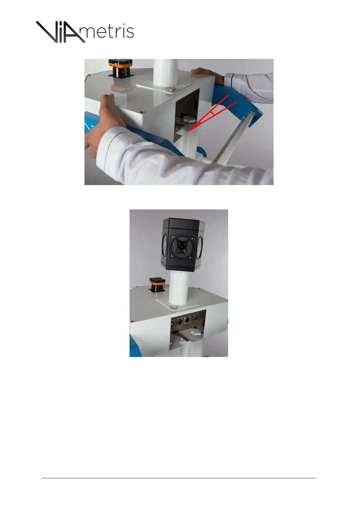 9. Install the processing unit using by facing the three plastic hooks to the holes in the mast frame
