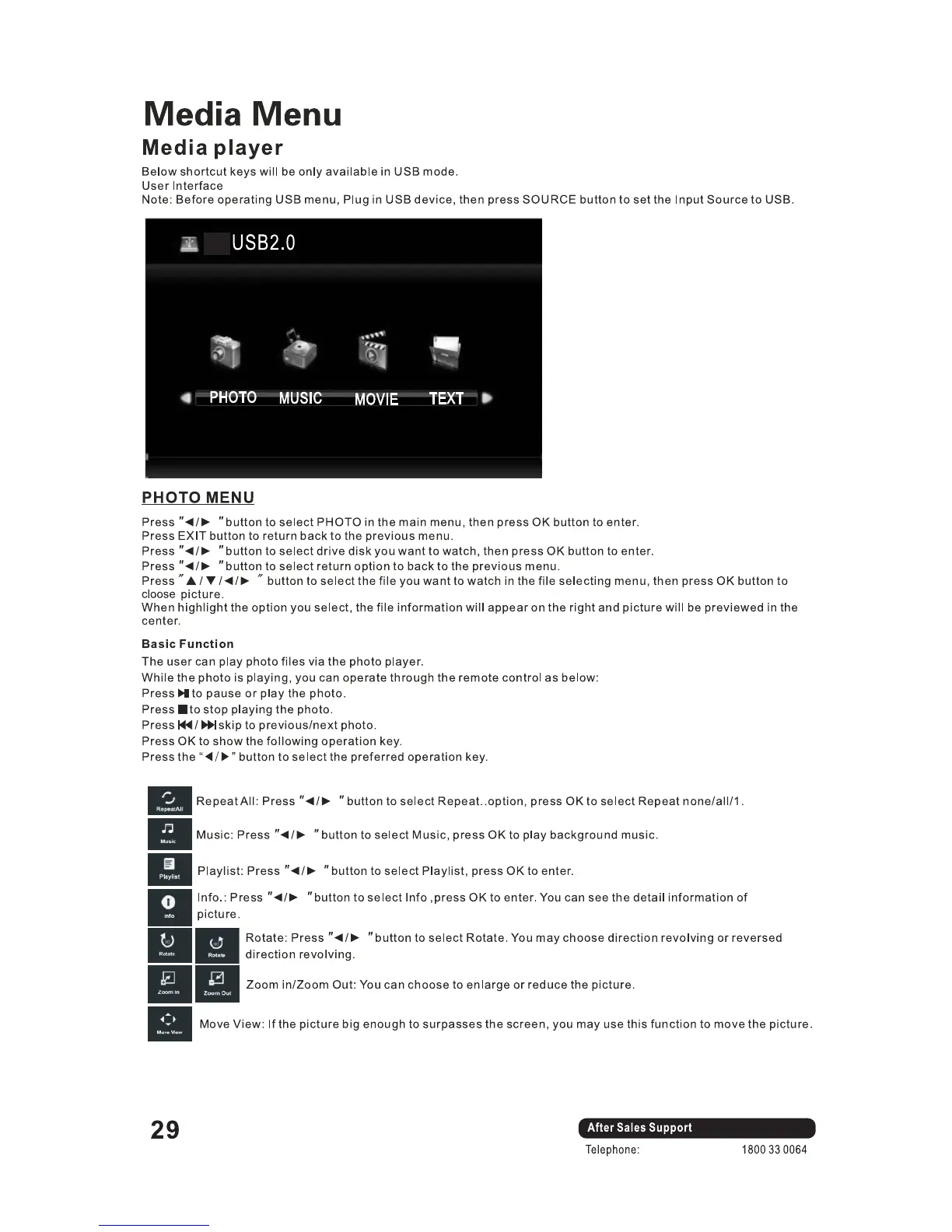 VIANO LED40FHD - Media Menu and Player; Media Player User Interface; Photo Playback Functions