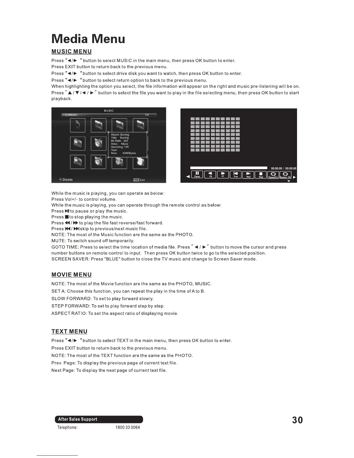 VIANO LED40FHD - Media Playback Controls; Music Playback Controls; Movie and Text File Playback