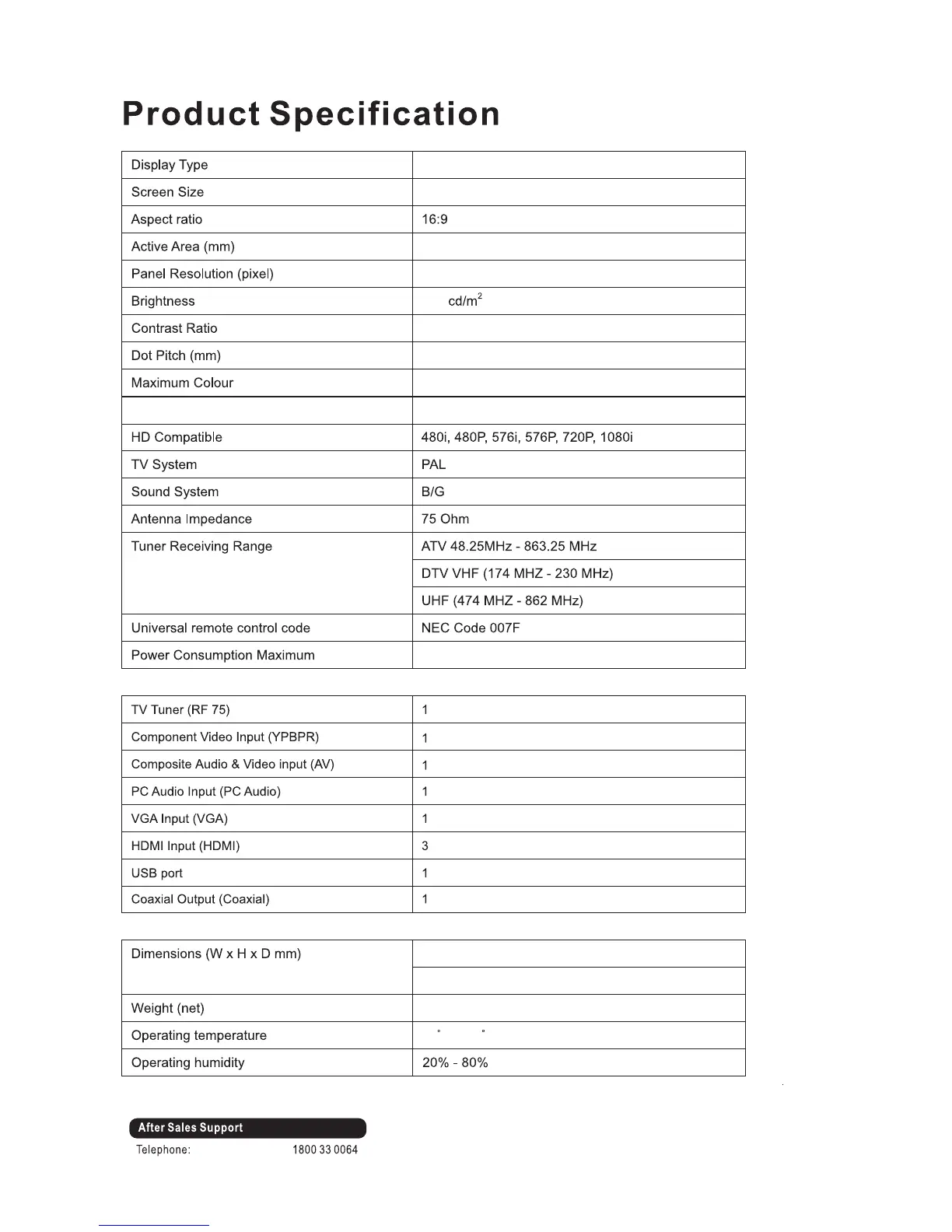 VIANO LED40FHD - Product Specifications