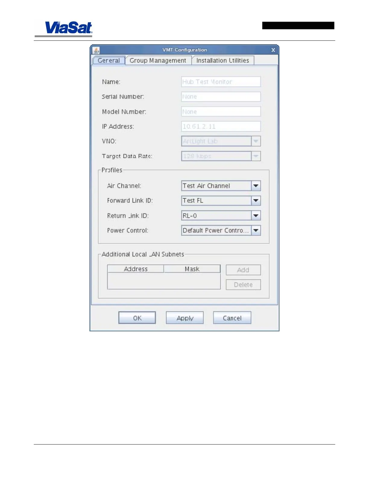 Figure 3-14. VMT Configuration Screen – General Tab.