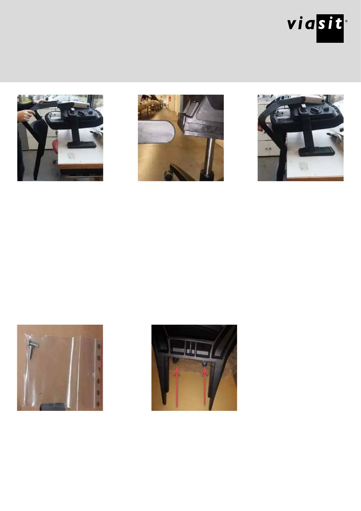 After the backrest has been inserted onto the guides, x the backrest using the 2 screws provided (6x20) to the