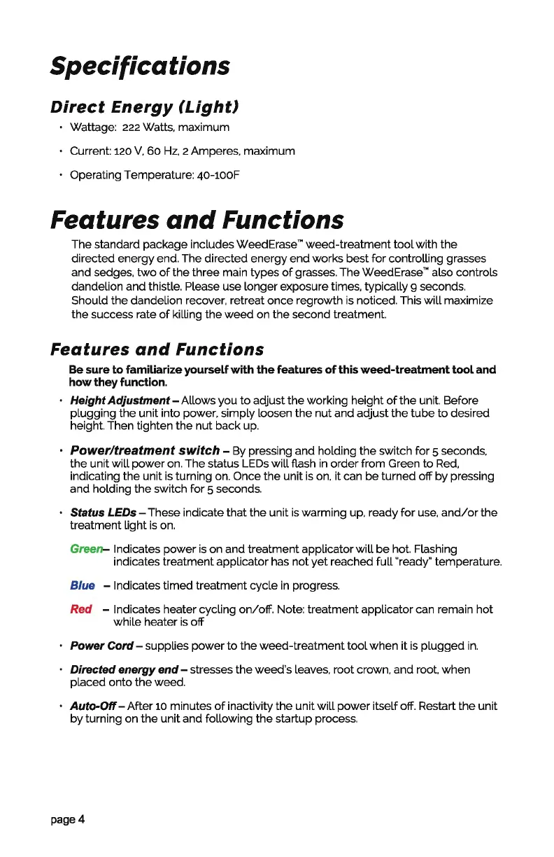 Directed energy end - stresses the weed's leaves. root crown. and root. when