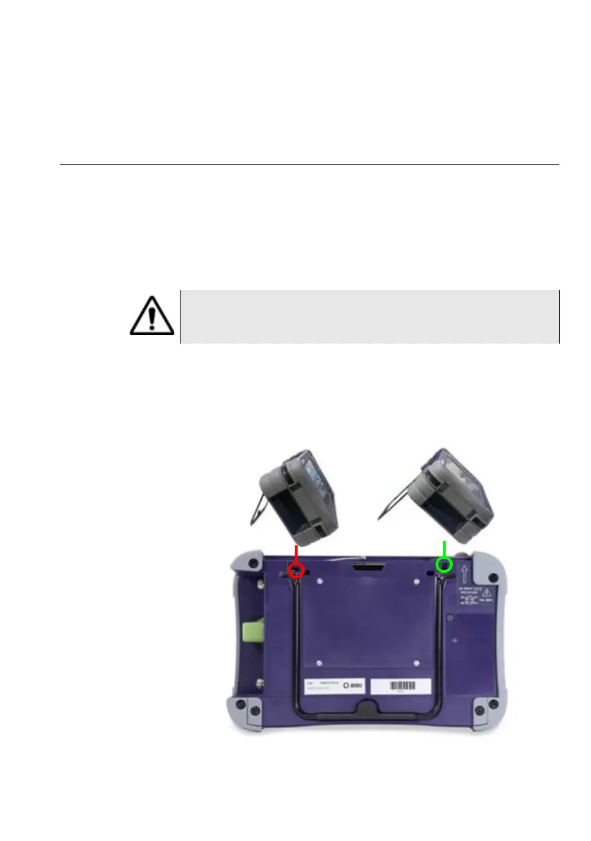 1 Unscrew the two captive fixing screws of the plug-in completely (up
