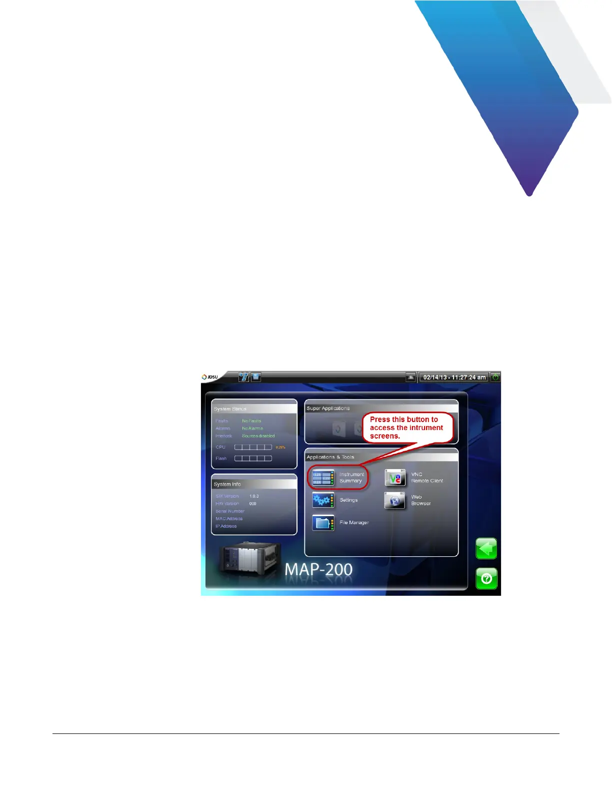 click on “Instrument Summary” on the home screen of the MAP-200 application.
