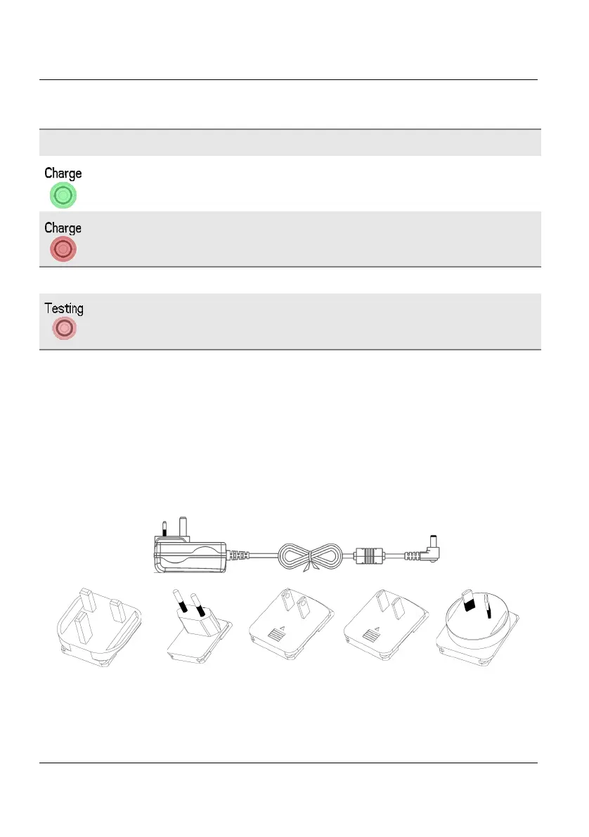 Solid green The instrument is connected to an external power source