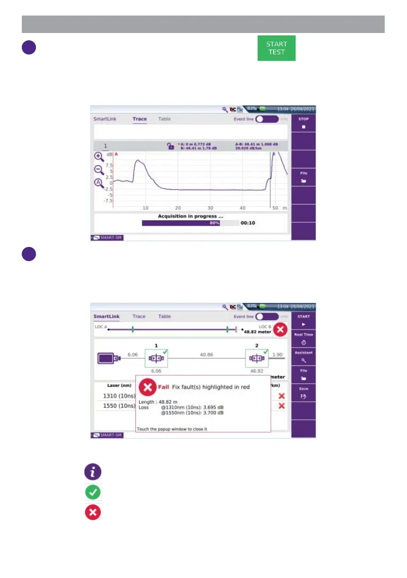 At the end of the test, the Smart Link view is displayed, with a pop up
