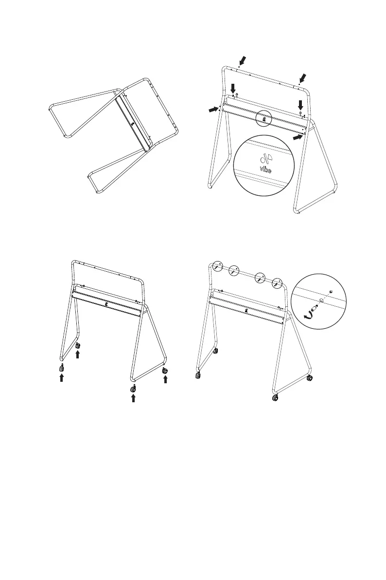 3. Insert the four wheels. 4. Thread the screws through the stand and plastic