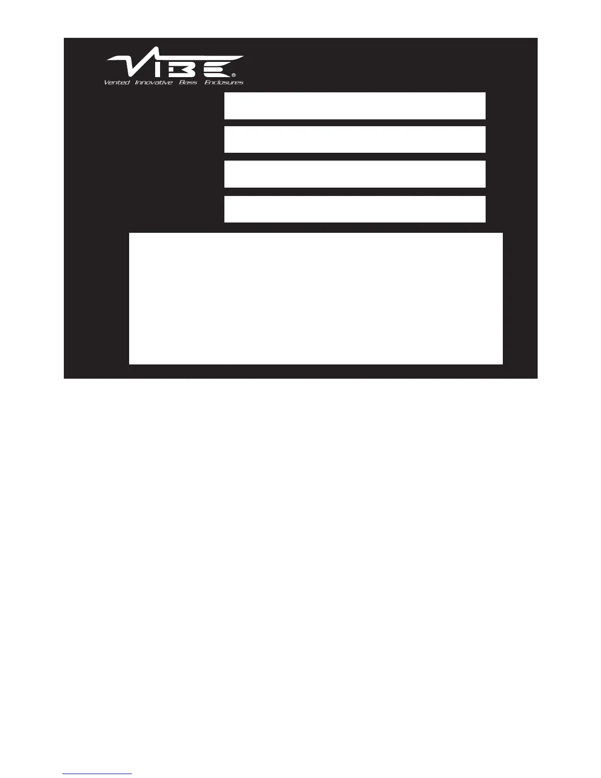 VIBE RECOMMEND CAUTION WHEN LISTENING TO MUSIC REPRODUCED THROUGH VIBE EQUIPMENT. VIBE EQUIPMENT IS CAPABLE OF PRODUCING SOUND AND SOUND