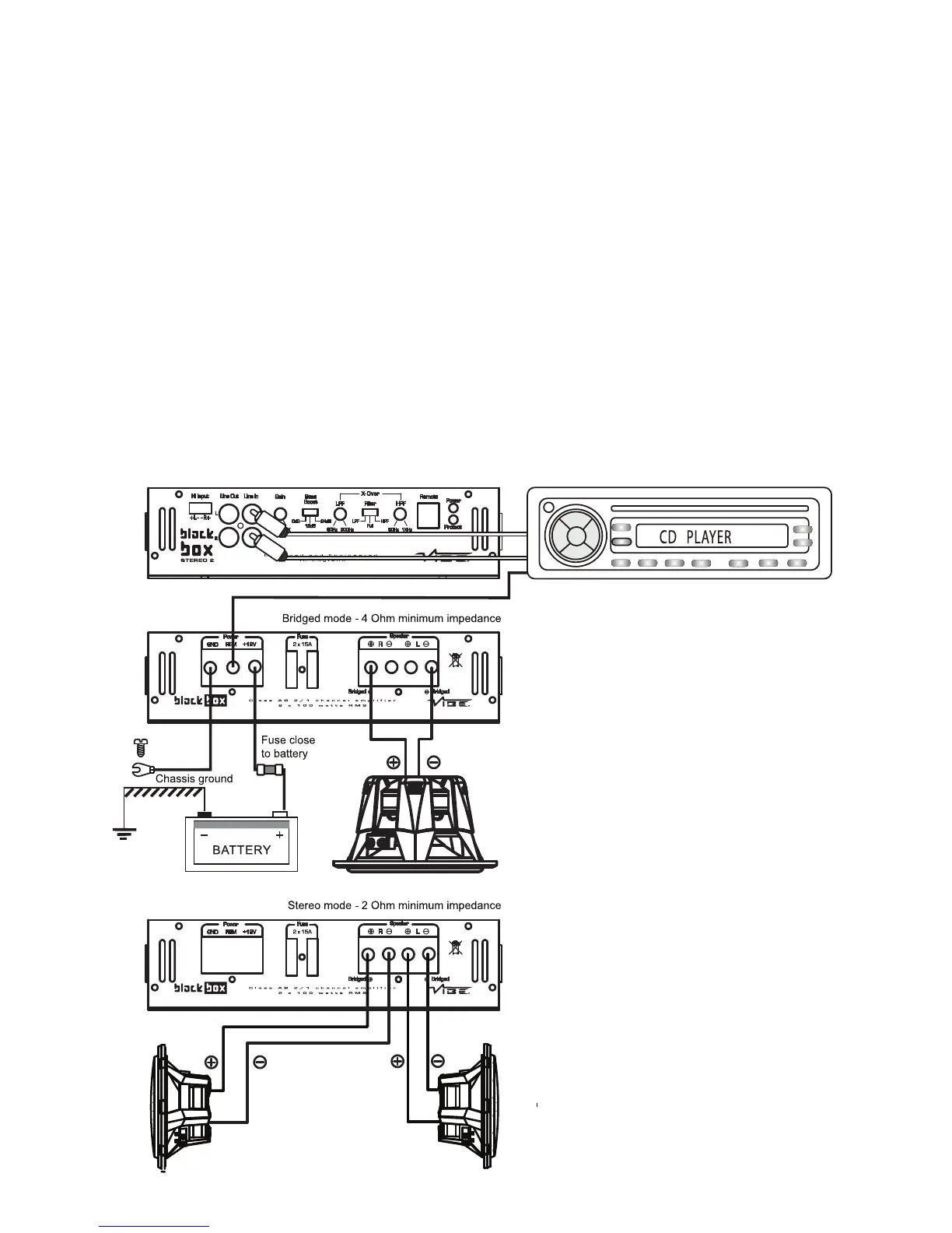 When the amplifier is operating correctly the green LED will illuminate. When the amplifier is in protection mode the red LED