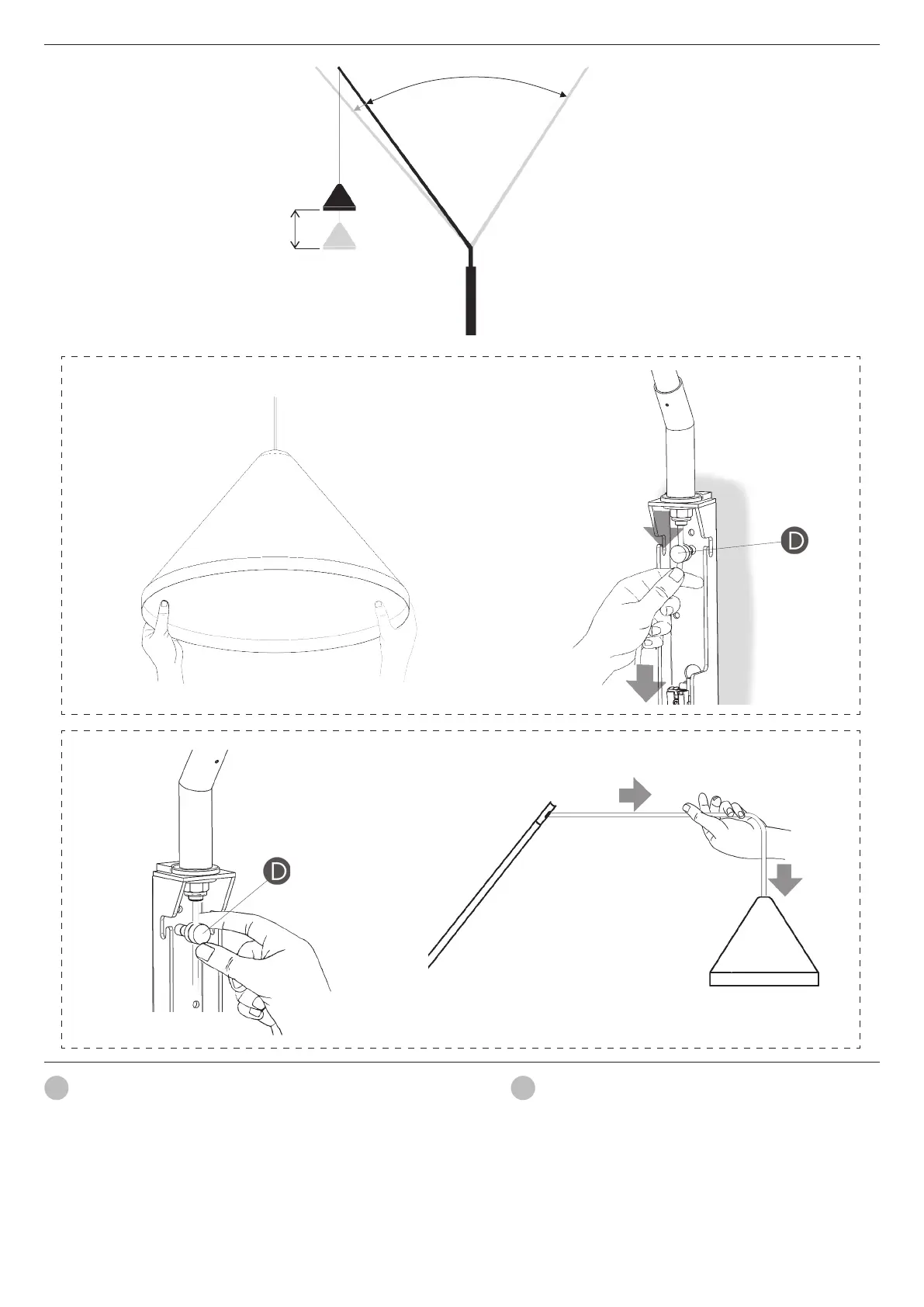 - Pour réduire la hauteur, desserrez l´écrou de fixation du câble (D)